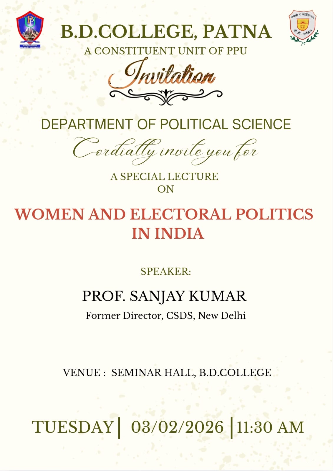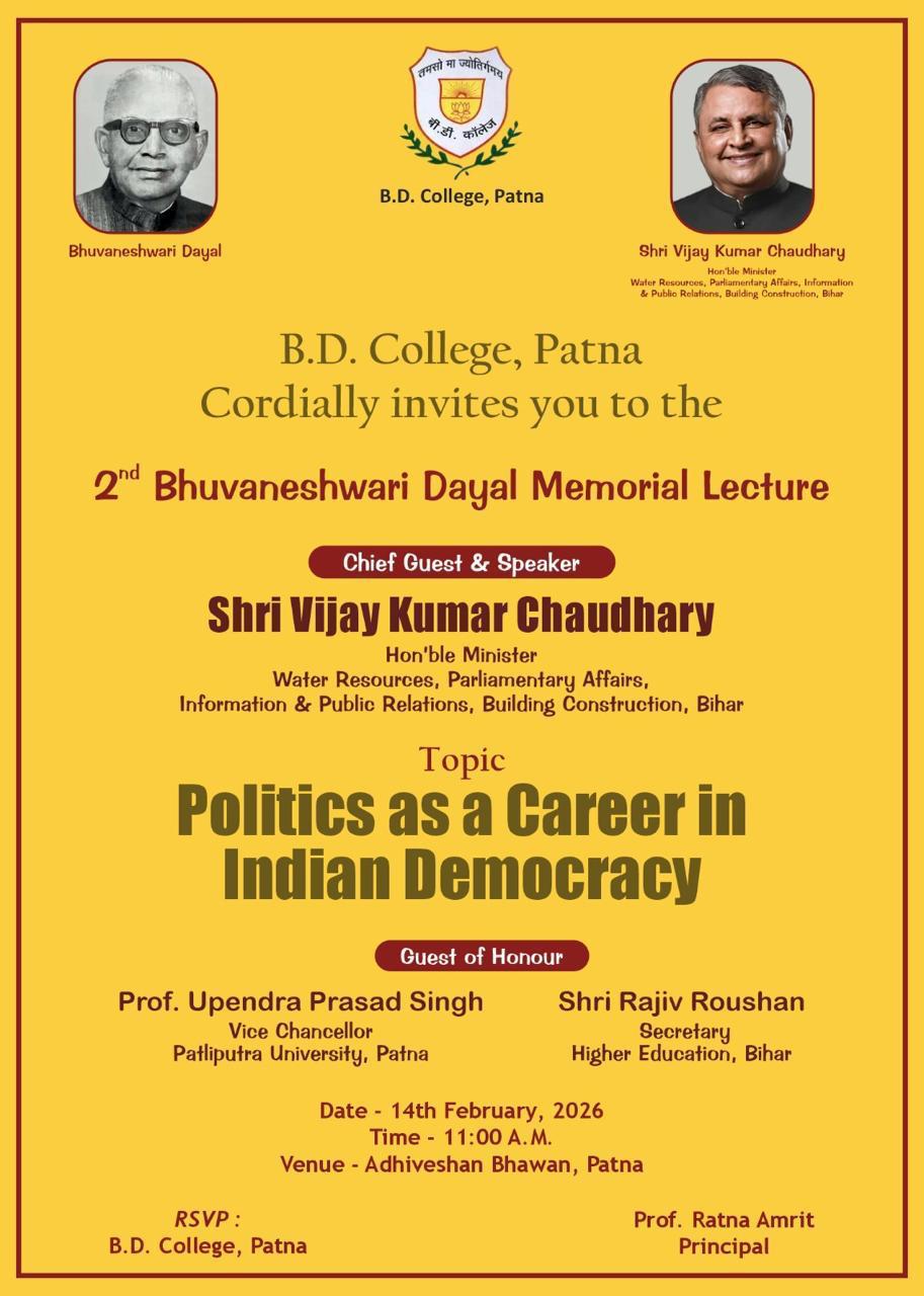 B.D. College, formerly known as B.D. Evening College, was established in 1970 by Sri Bhuvneshwari Dayal. Located in the heart of Patna, the college has emerged as a premier institution for higher education.
