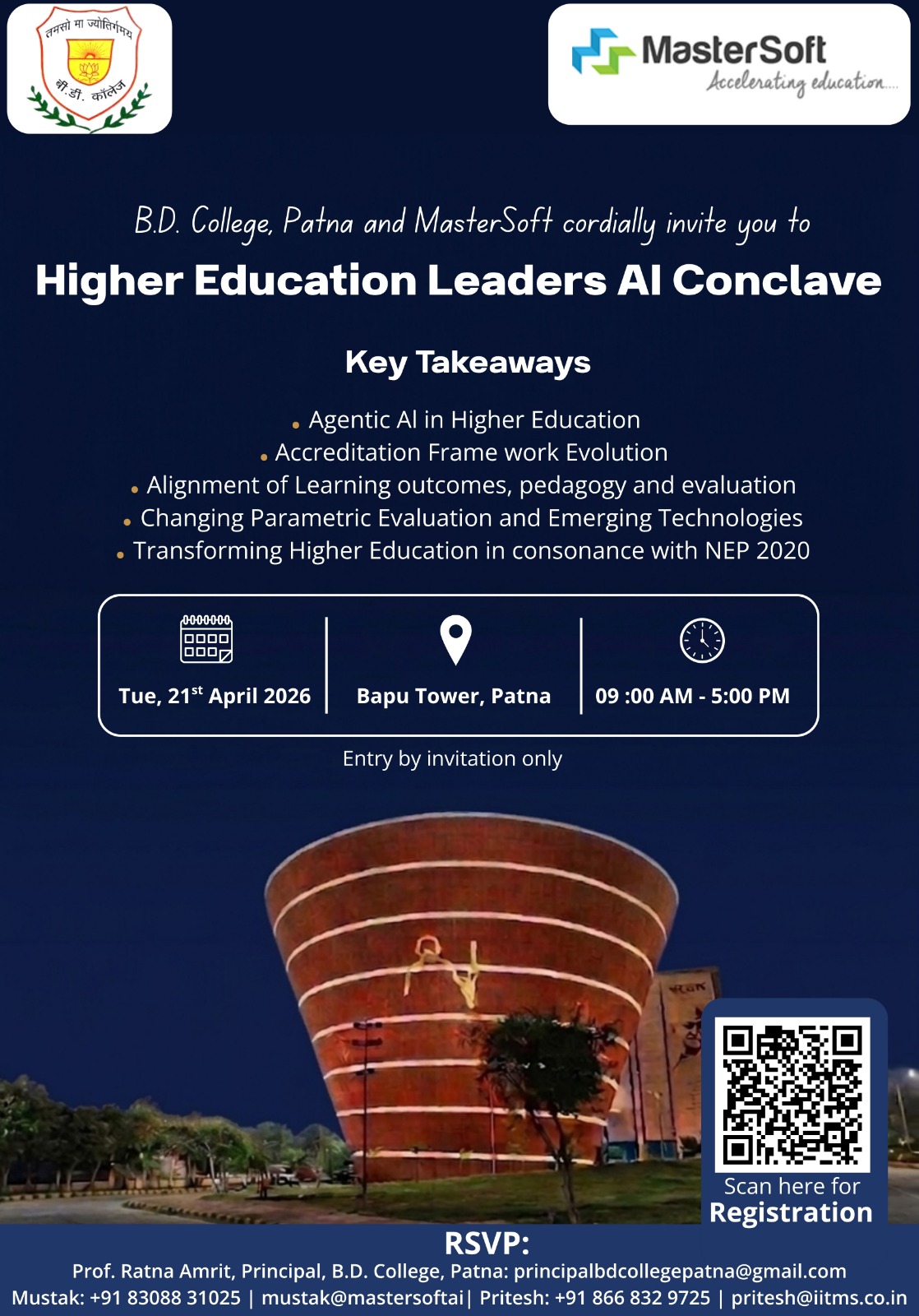 Update date:- 12-02-2026 :15:37:23Join Higher Ed Leaders AI Conclave–Patna Dialogue on 21 April 2026 (9AM-5PM) at Bapu Tower, Patna. Explore AI's role in academia. Register: https://share-na2.hsforms.com/1QtslosFKSQaOecALsvCVRAqz87t RSVP: Prof. Ratna Amrit.