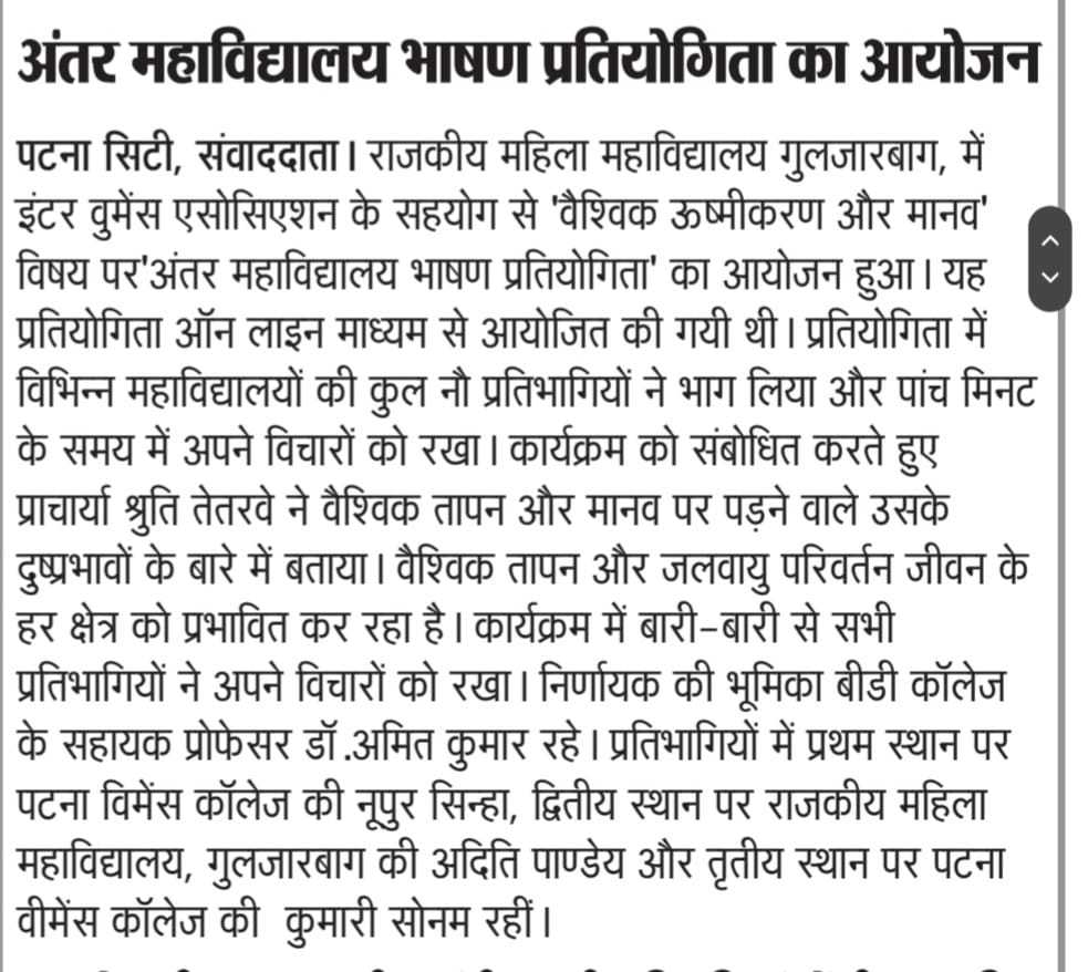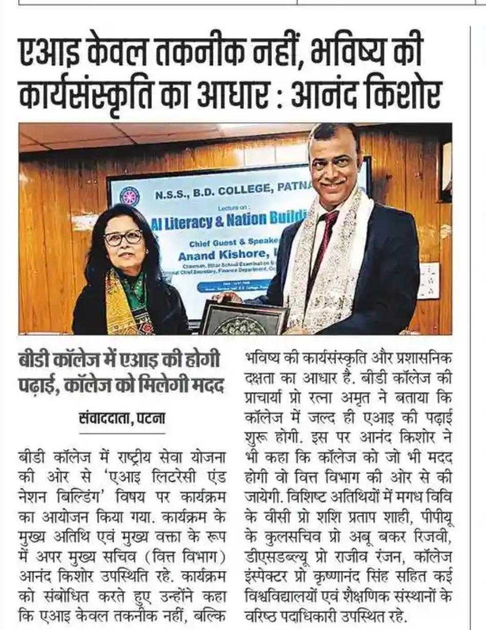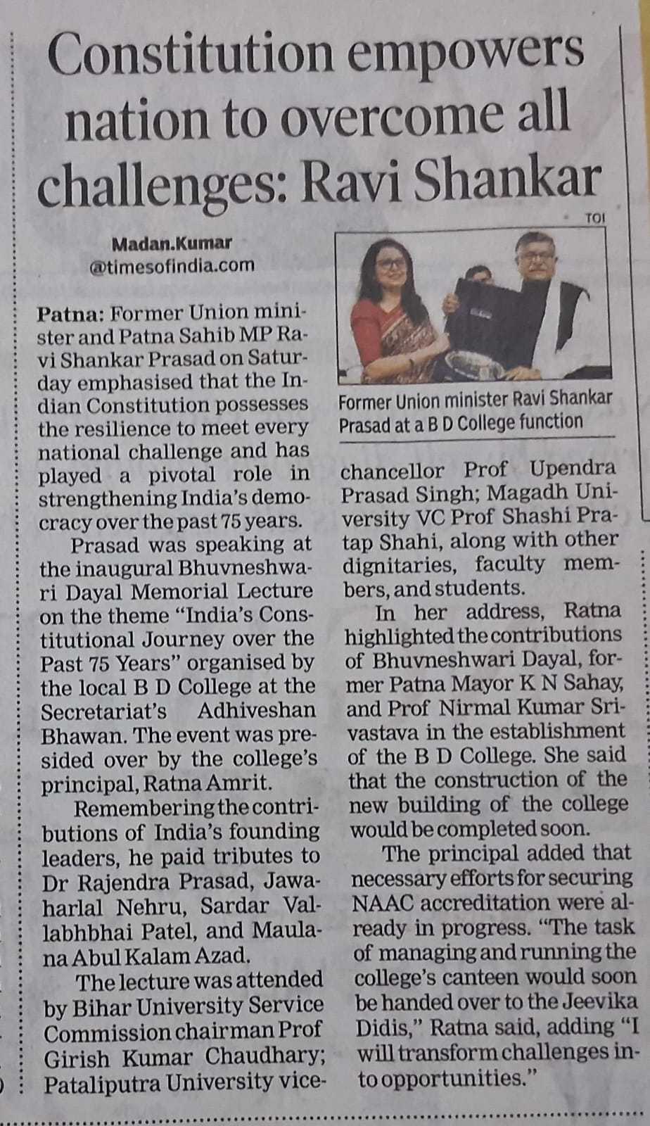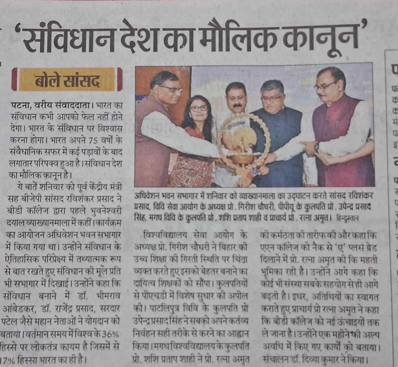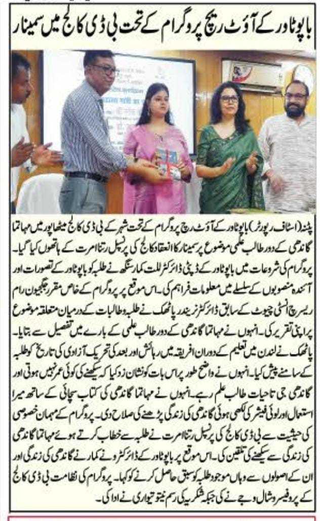 Lecture held at BD College, Patna under Bapu tower outreach program