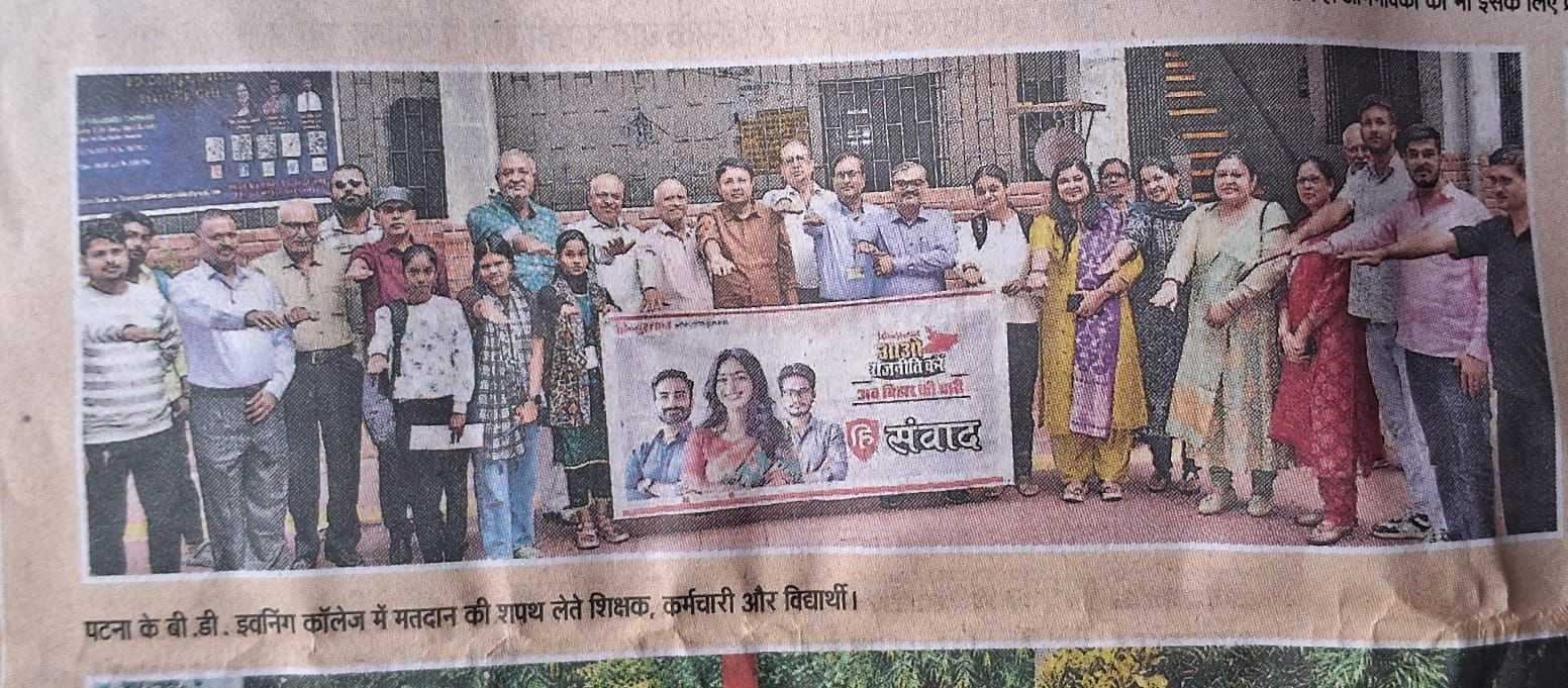 Teachers, staff and students taking the oath to vote at B.D. Evening College, Patna.