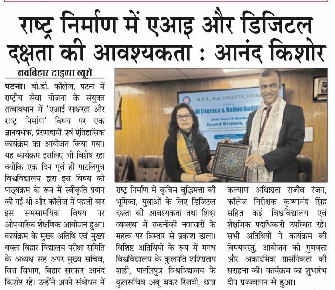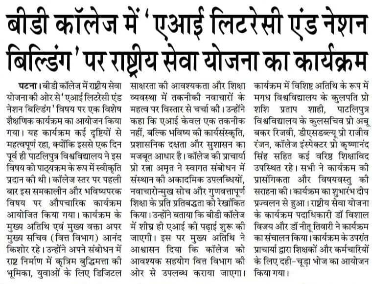 National Service Scheme programme on 'AI Literacy and Nation Building' at BD College