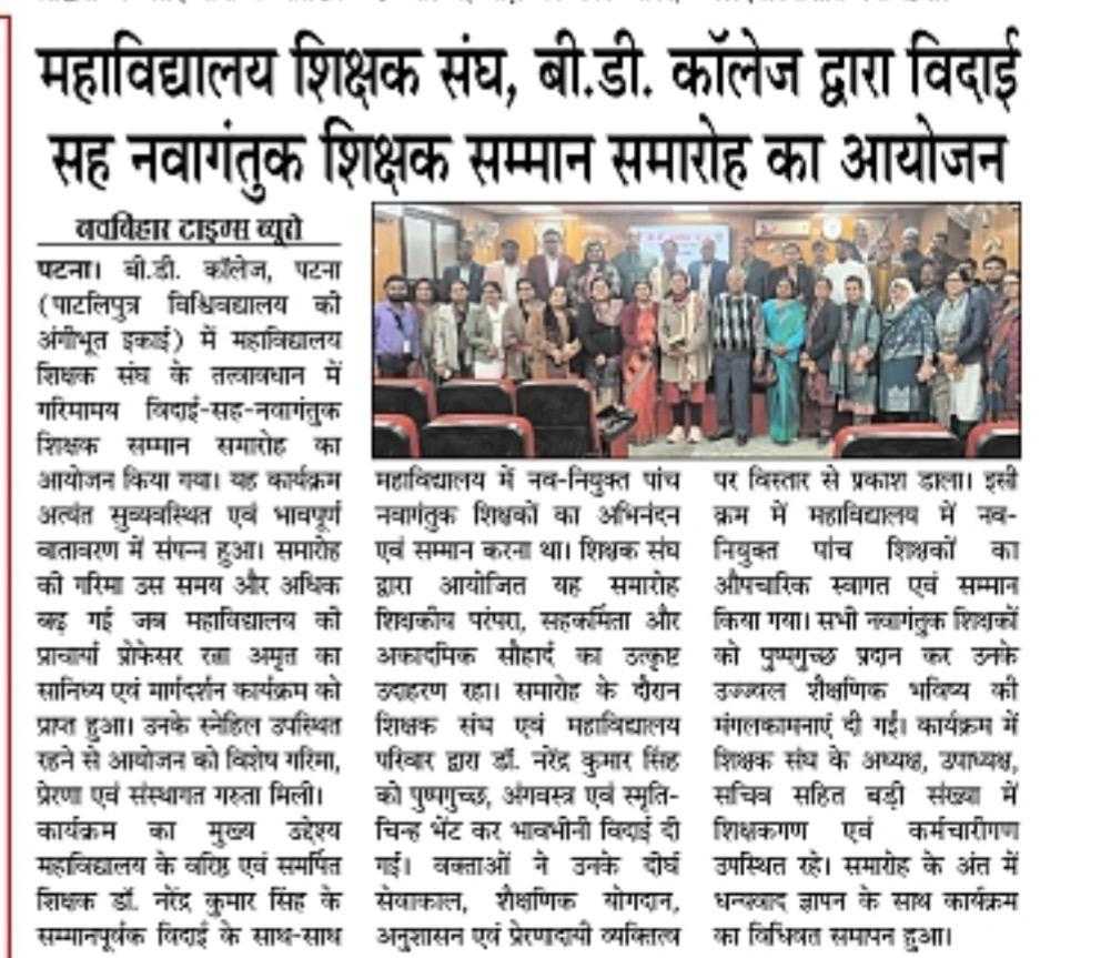 The College Teachers' Association of B.D. College organized a farewell and felicitation ceremony for newly appointed teachers.