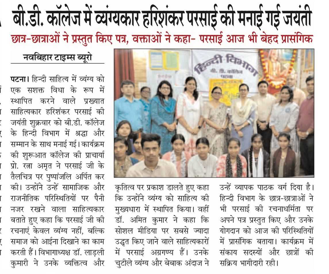 BD College celebrates satirist Harishankar Parsai's birth anniversary Students presented letters, speakers said – Parasai is still very relevant today.