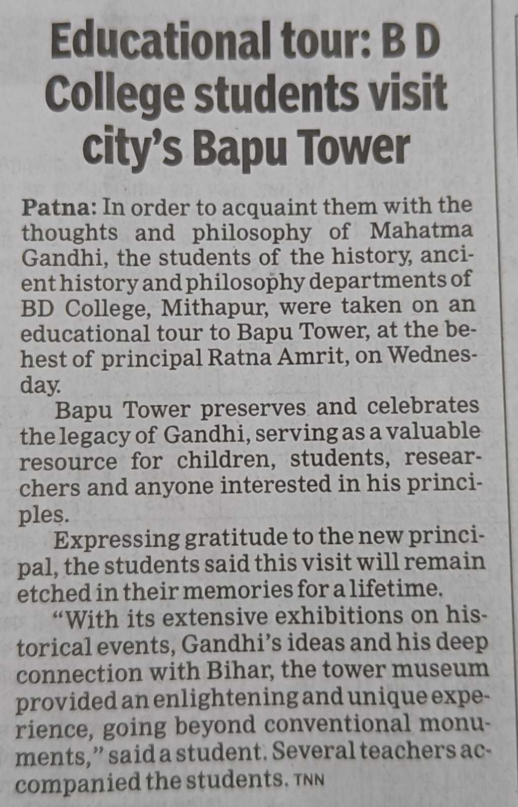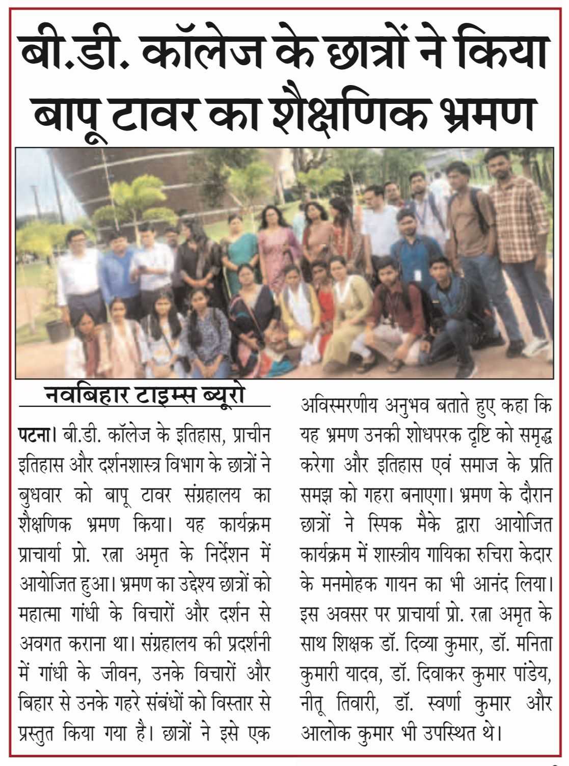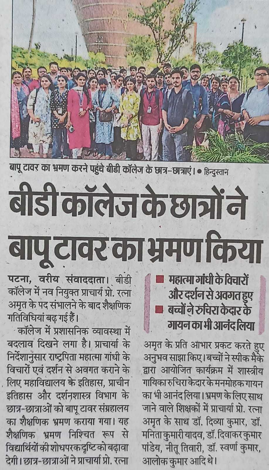 B D College Patna students made an educational tour of Bapu Tower