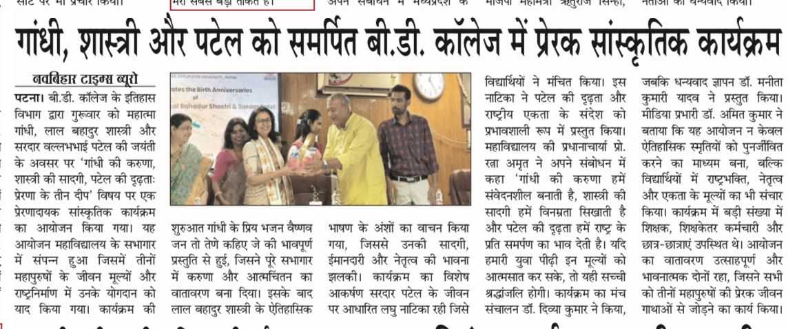 Inspiring cultural programme dedicated to Gandhi, Shastri and Patel at BD College, Patna.