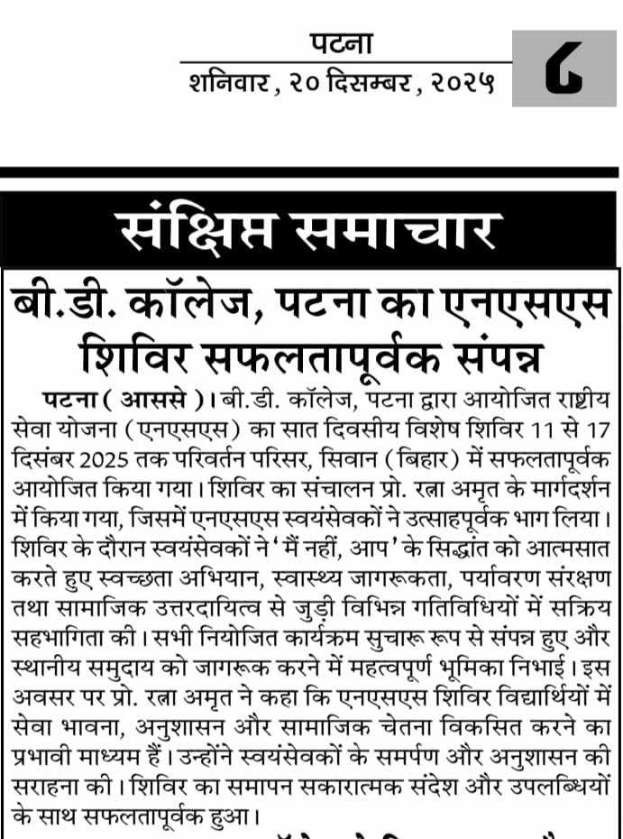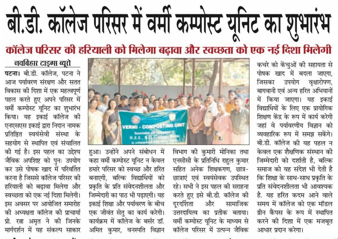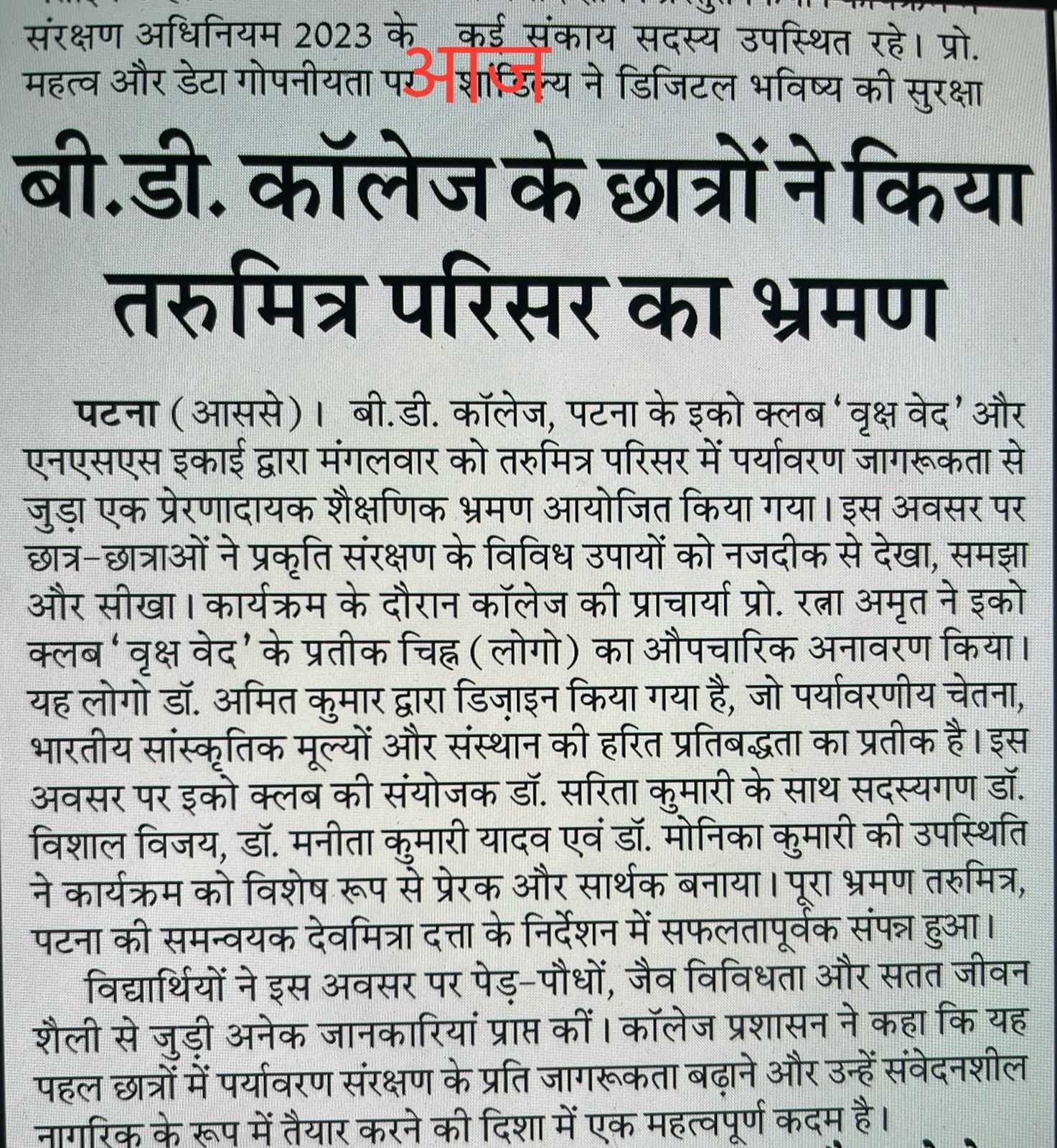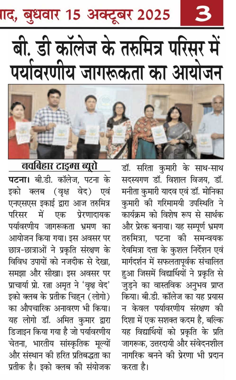 BD College students participated in an inspirational environmental awareness programme organised by Patna Eco Club (Vriksha Ved) and the NSS unit at the Tarumitra campus on Tuesday
