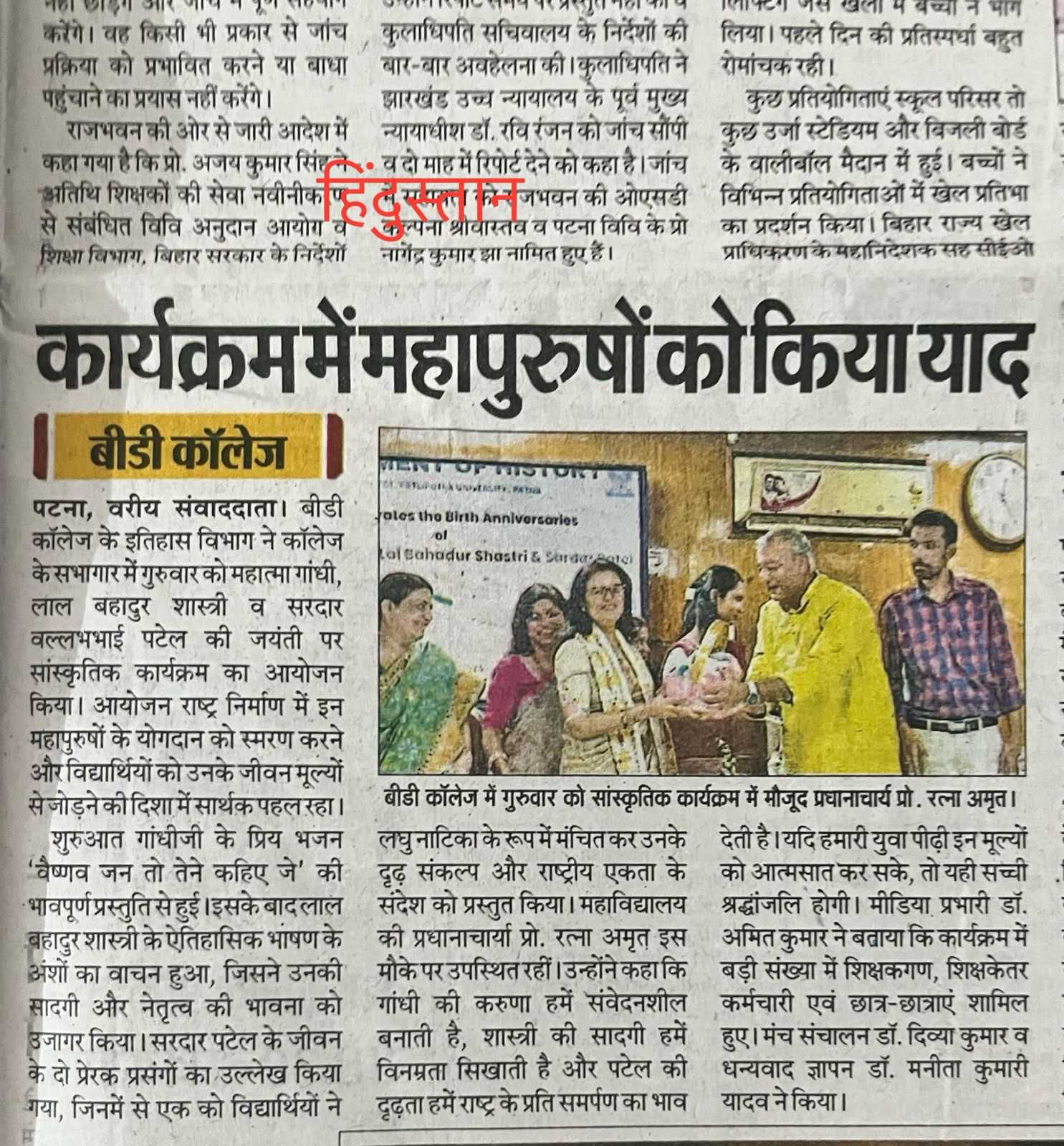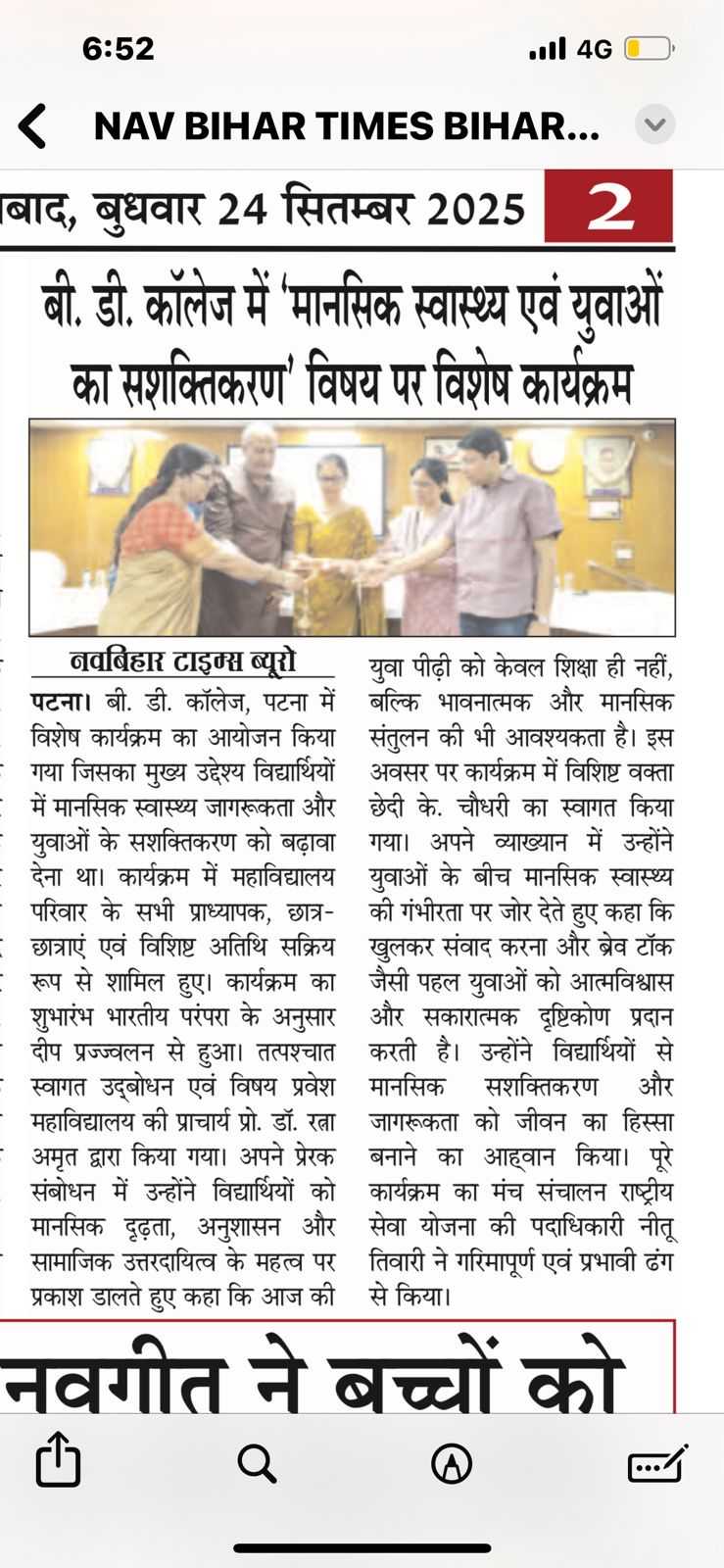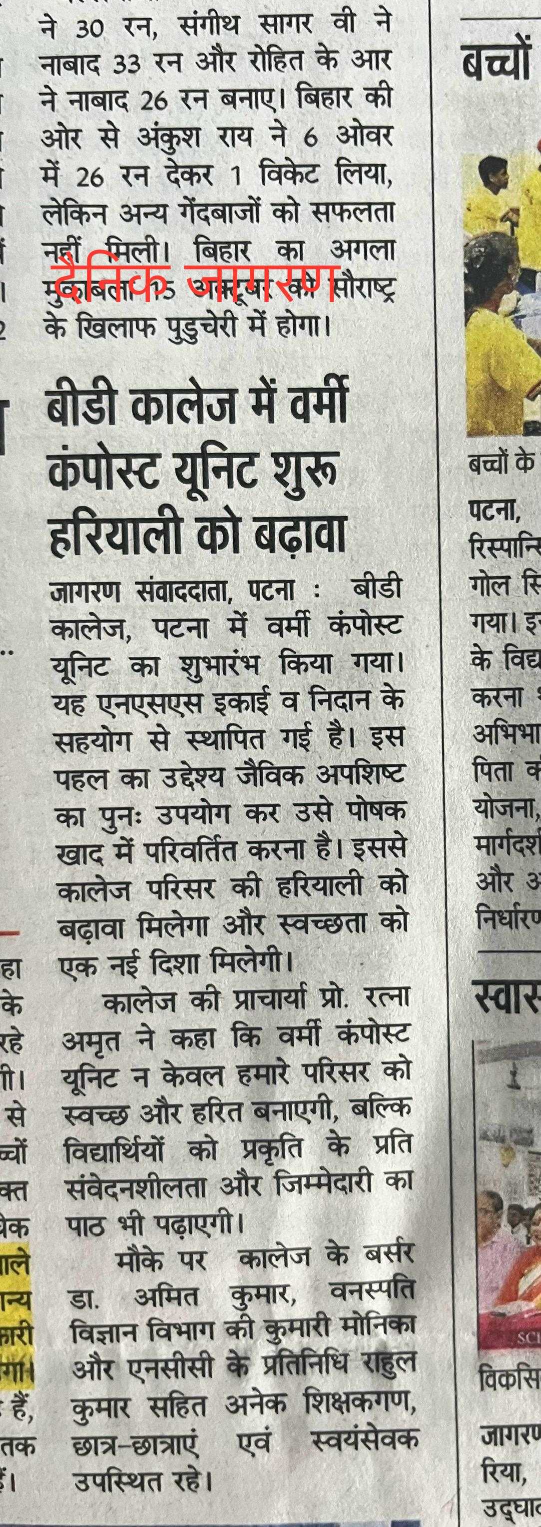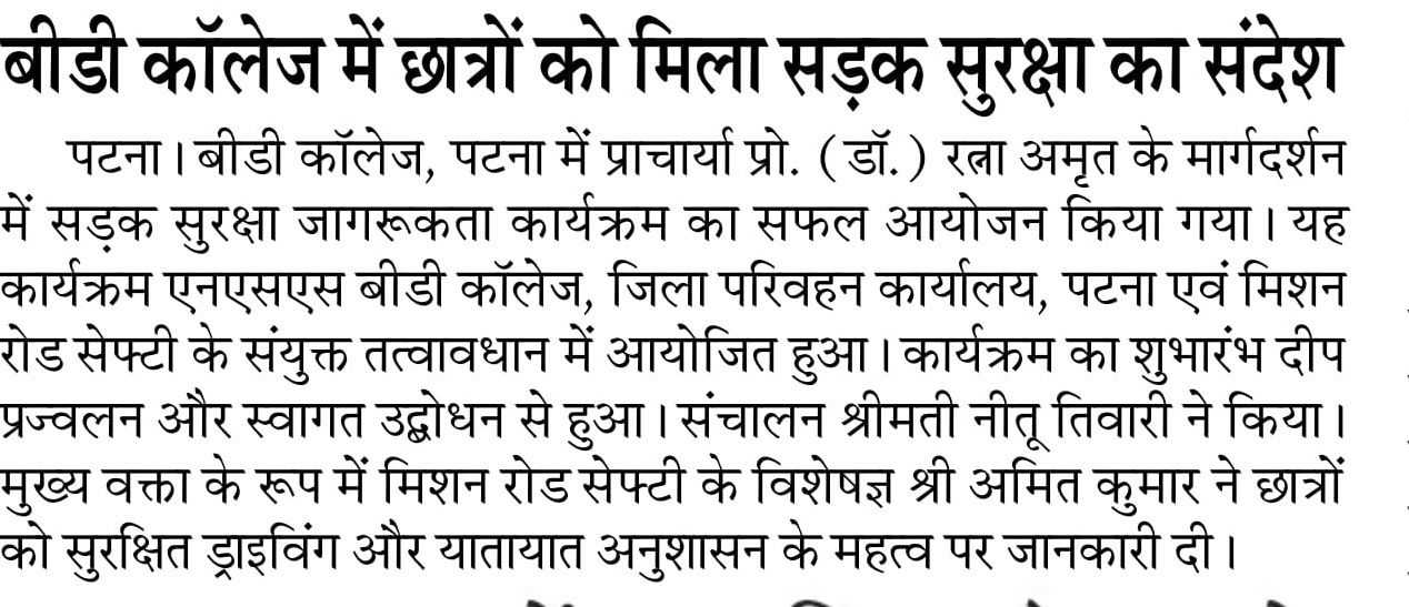 BD College students participated in an inspirational environmental awareness programme organised by Patna Eco Club (Vriksha Ved) and the NSS unit at the Tarumitra campus on Tuesday