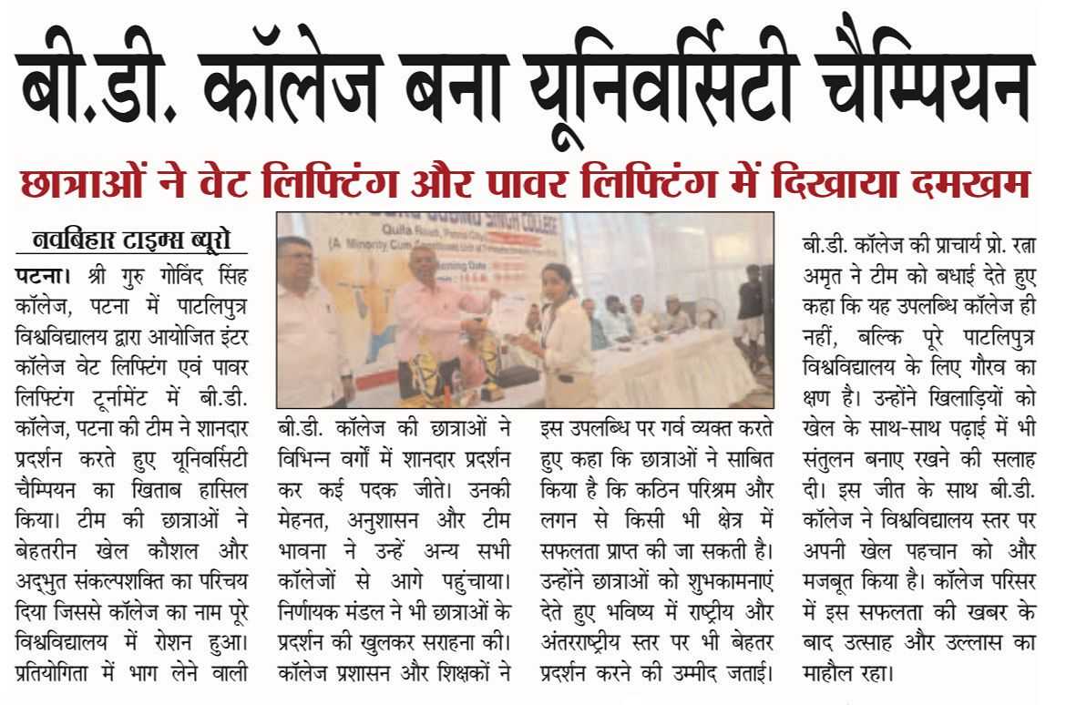 BD College became the University Champion The girl students displayed their strength in weight lifting and power lifting.