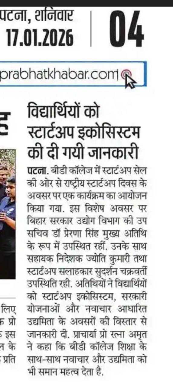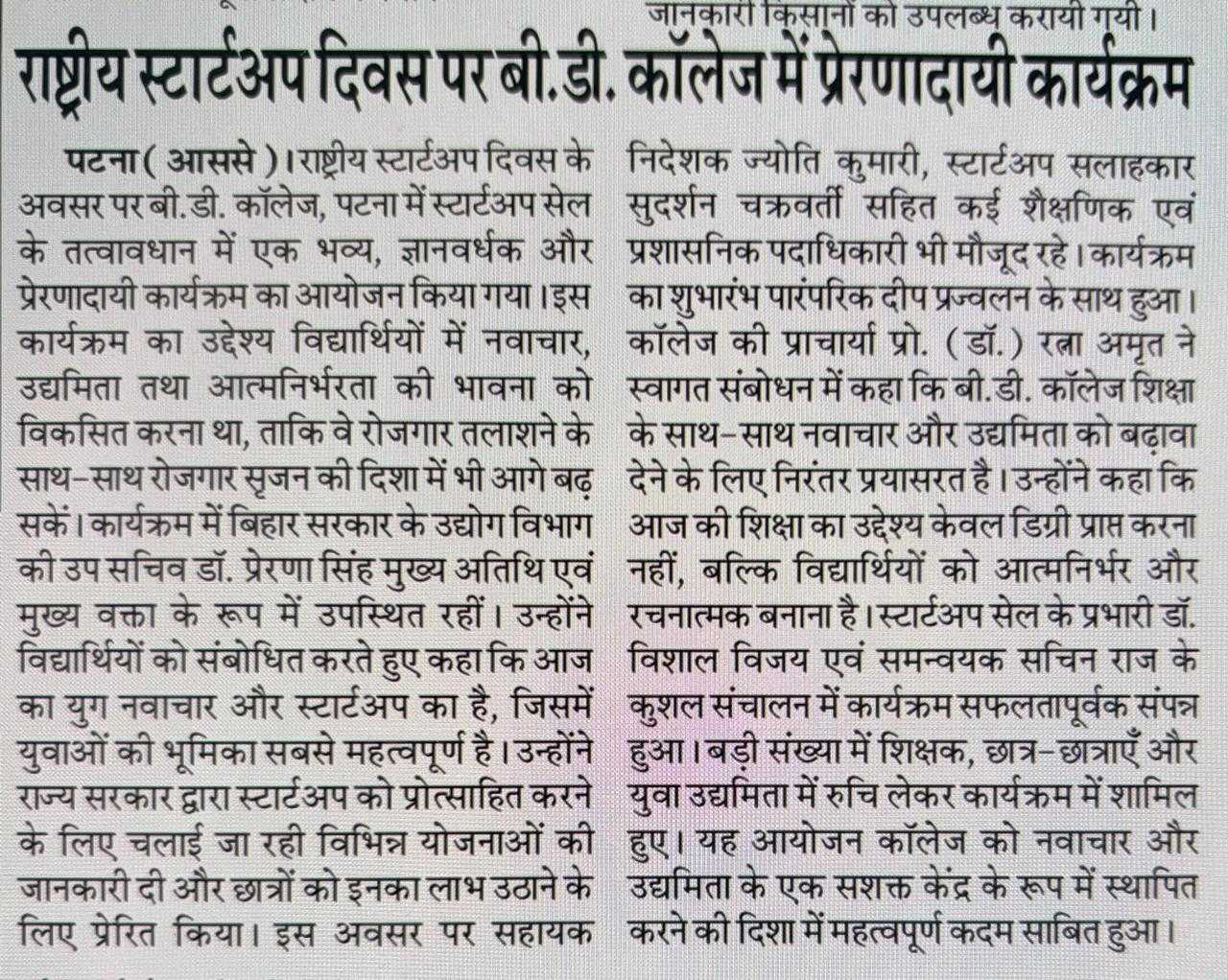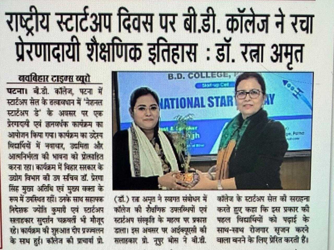 B.D. College, Patna creates inspiring academic history on National Startup Day