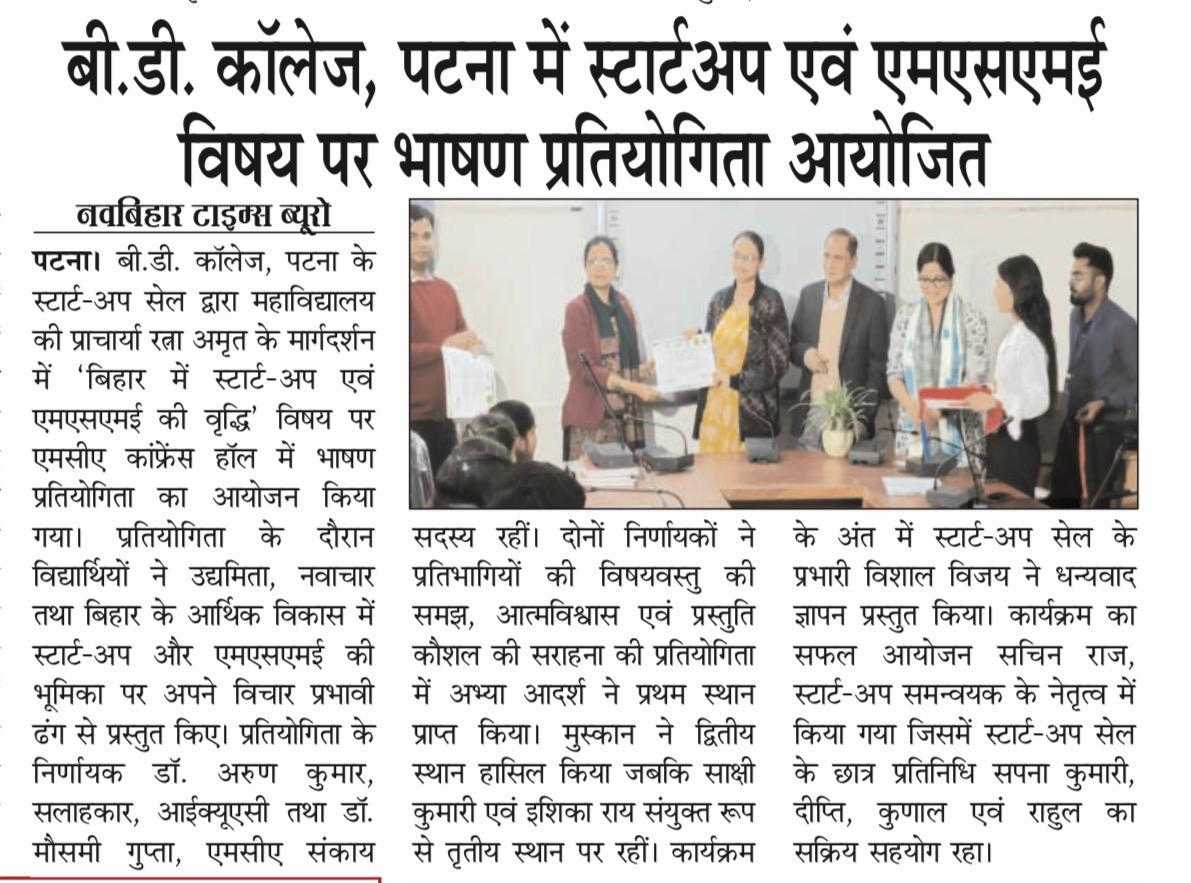 BD College, Patna organised a speech competition on the topic of Startup and MSME.