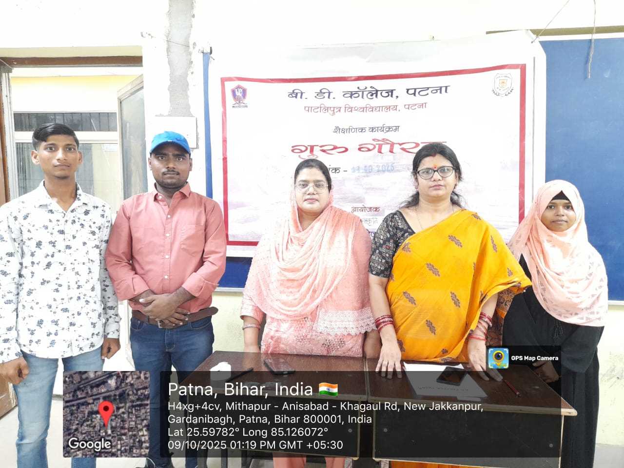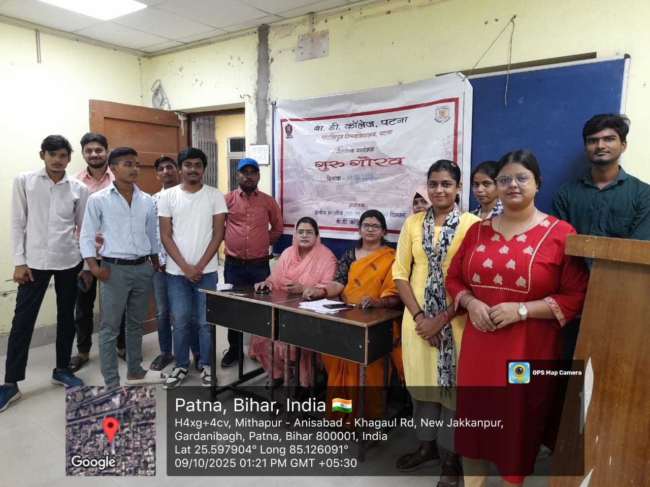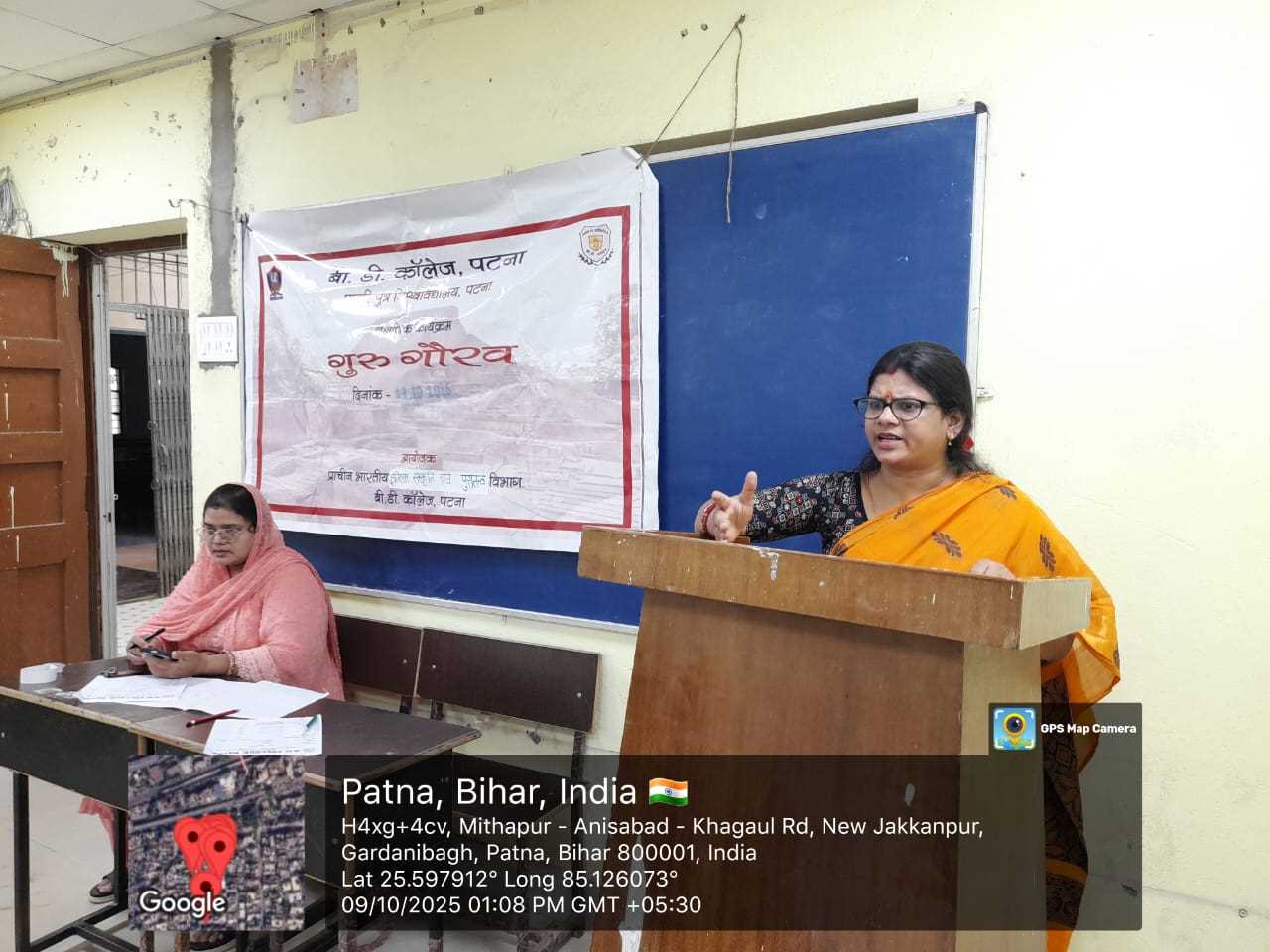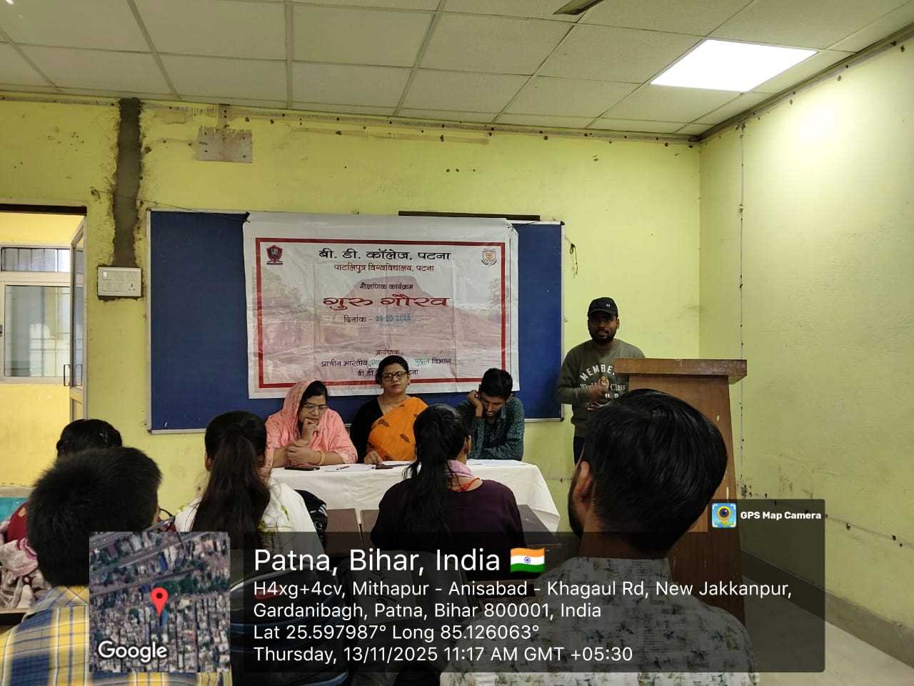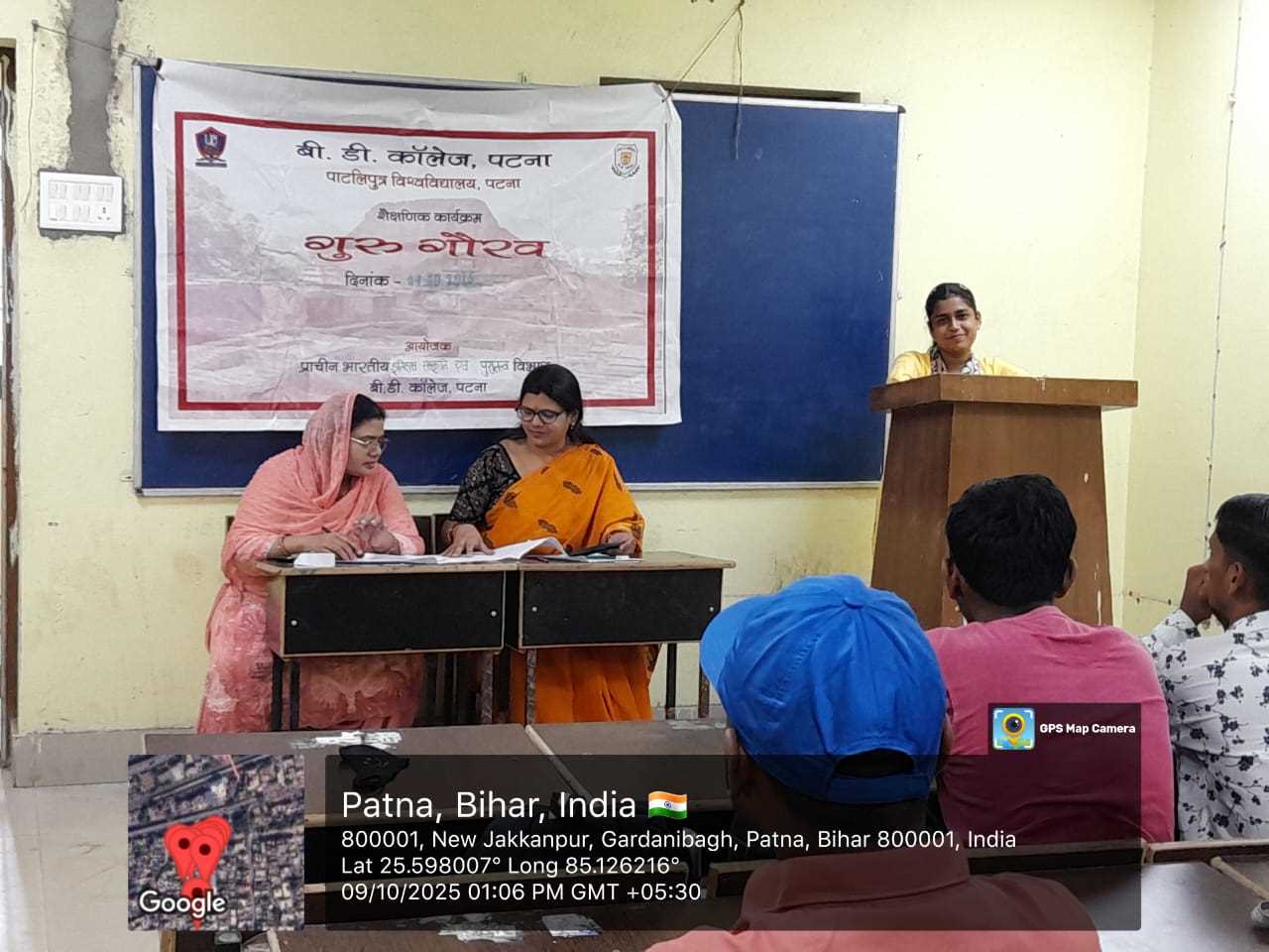 The Department of Ancient History, Culture, and Archaeology at B.D. College, Patna, successfully organized an impromptu speech competition on "The Relevance of Marriage as an Ancient Indian Social Institution" on November 13, 2025, as part of the weekly academic series "Guru Gaurav." The program was inspired by the educational guidance and encouragement of the college's Principal, Professor Ratna Amrit. The program was conducted by the Head of the Department, Mrs. Neetu Tiwari.