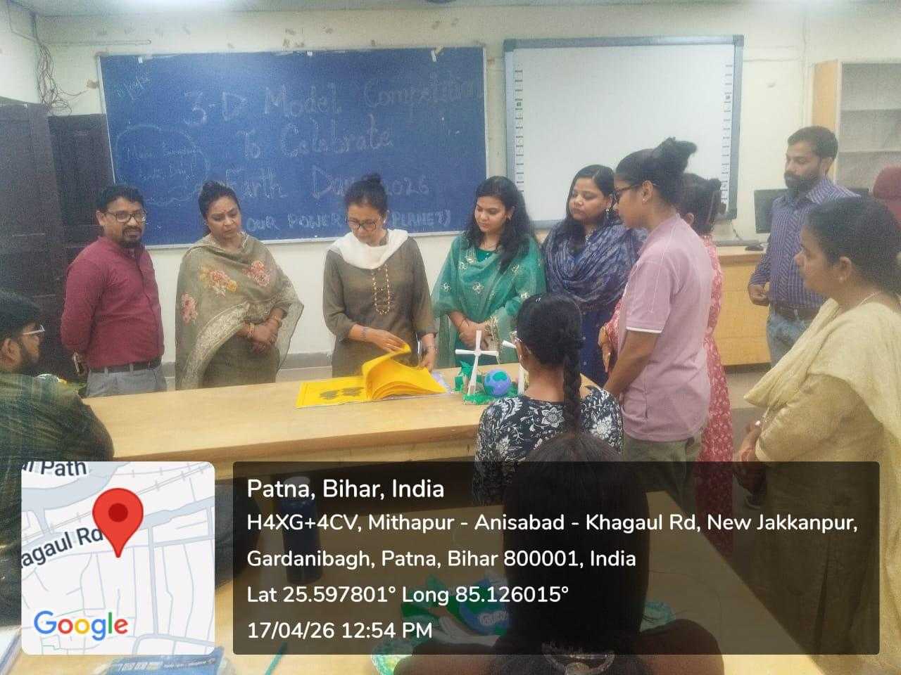The Department of Botany, B.D. College, Patna, celebrated Earth Day (17 April 2026) with active student participation to promote environmental awareness. Principal Prof. Ratna Amrit emphasized conservation and student involvement. Organized under Dr. Garima Pathak with Kumari Monika, it featured competitions including a 3D model event on sustainability themes. Winners were awarded, and judges Dr. Aparajita, Dr. Nisha Rani, and Dr. Birendra Mandal evaluated entries.
