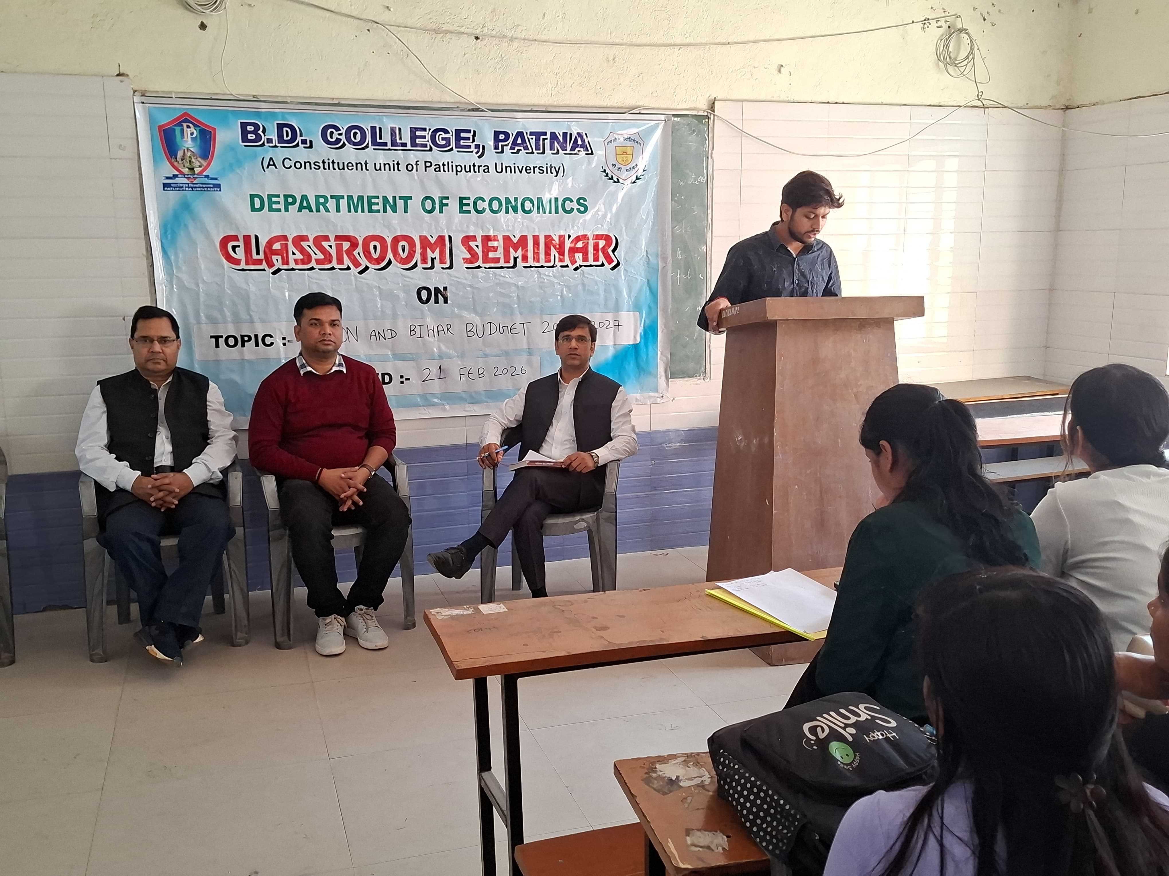 The department held a special classroom seminar and paper presentations on the "Union and Bihar Budget 2026-27"
