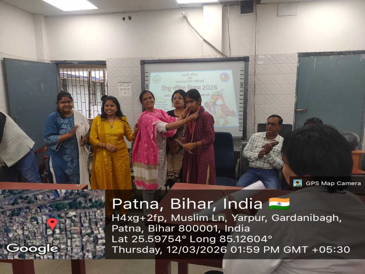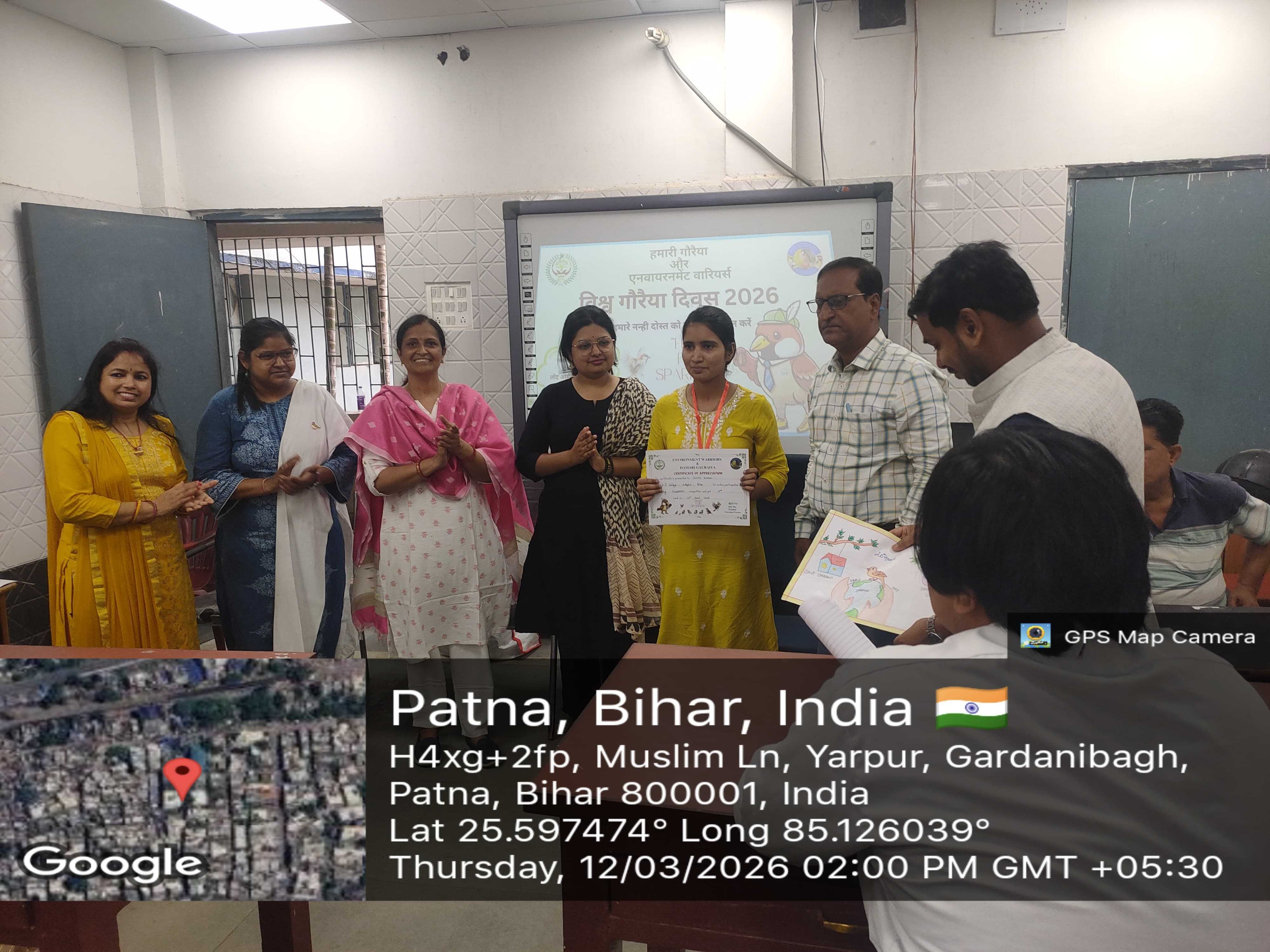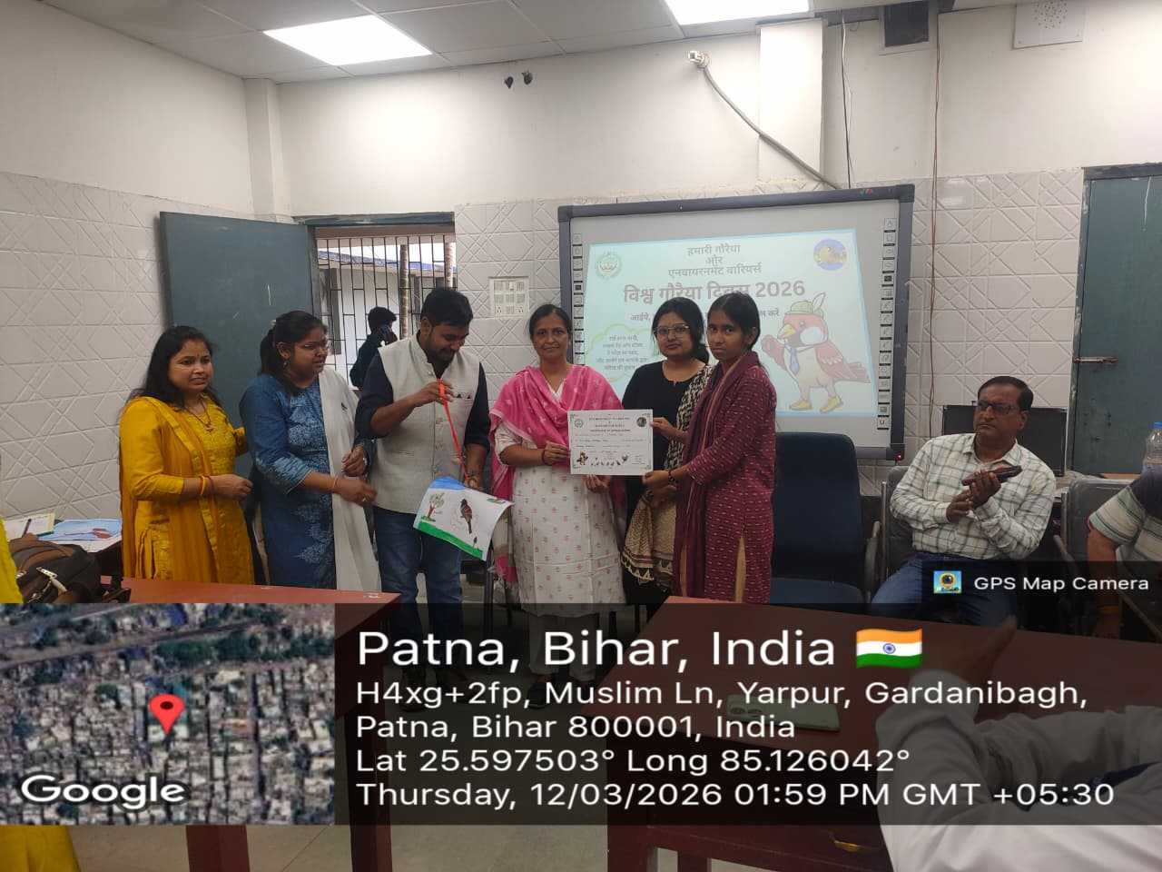 On 12 March Geography Dept, B.D College,Patna with Hamari Sparrow & Environment Warriors,held contests for sparrow conservation.Dr. Manisha Priyambada & Aditi Roy urged bird protection.Winners:Muskan Rani (Painting 1st),Sweety Kumari (2nd),Tanisha Mishra (3rd) Harsh Srivastava (Poetry) Supriya Shandilya (Essay) Team Kuruvi (Quiz).Dr. Sudhir Kumar,Dr.Monica Kumari,Kritika Mukherjee, Nishant Ranjan & Sabhyata Kumari joined the student pledge to save biodiversity via local action and food/water.