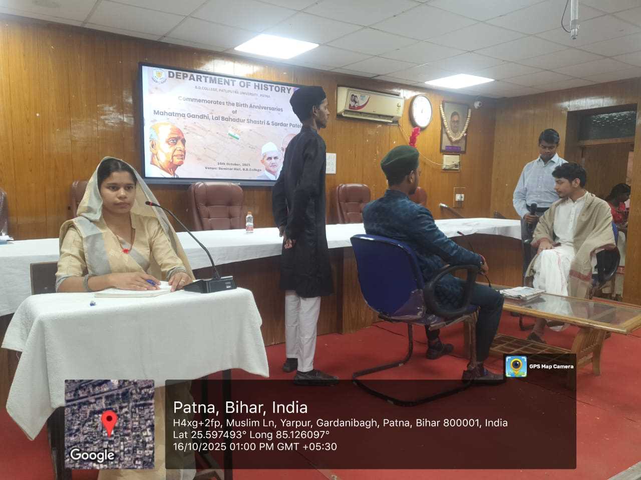 On the occasion of the birth anniversary of Mahatma Gandhi, Lal Bahadur Shastri and Sardar Vallabhbhai Patel, a cultural programme was organised by the History Dept in which the students presented various aspects of the personality and works.