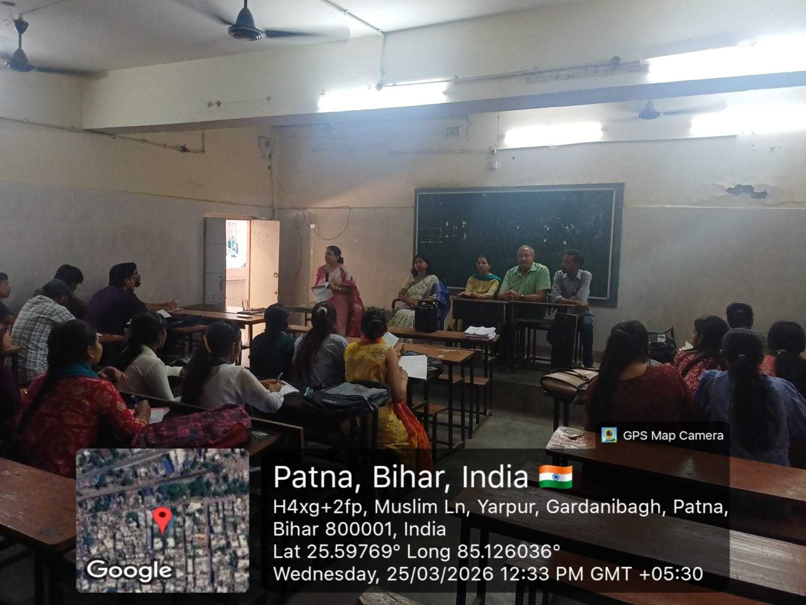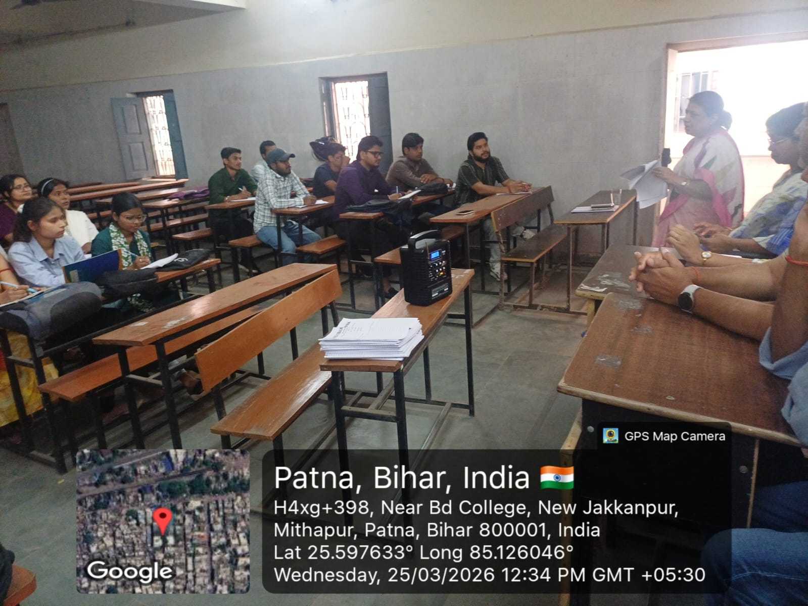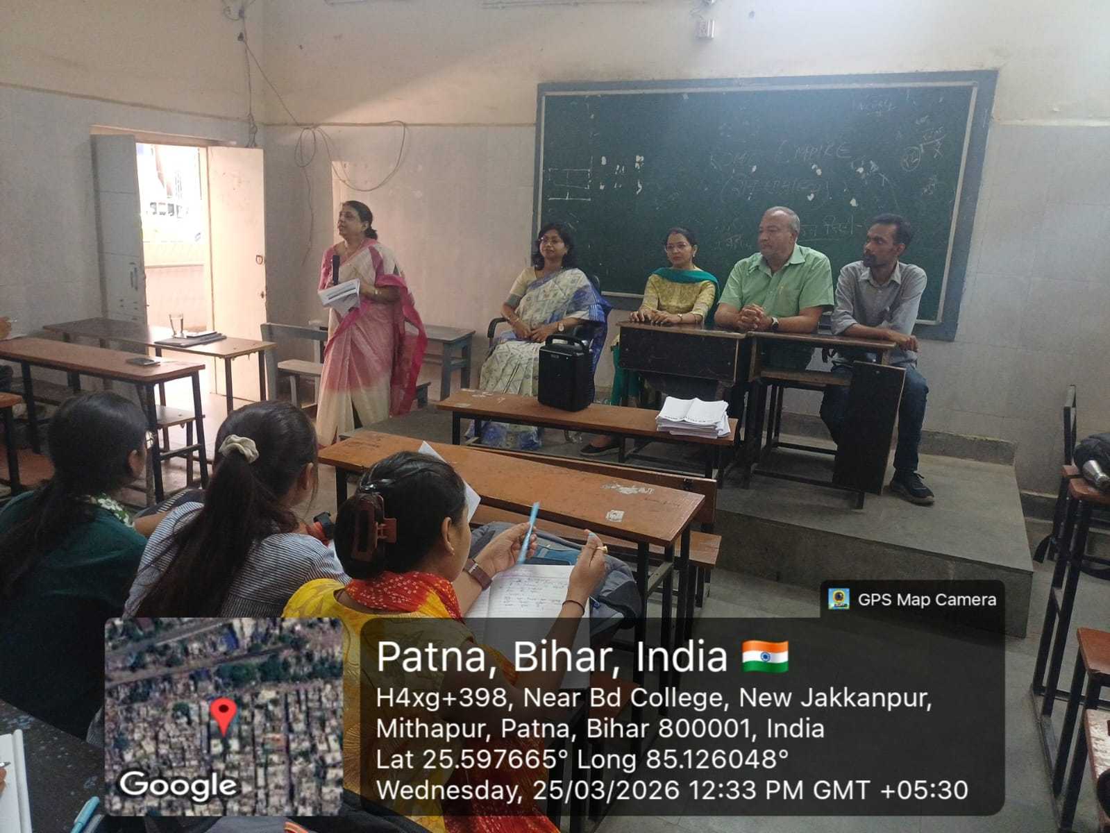 On December 6, 2025, a heritage walk was successfully organized with the joint support of the History Department and the National Service Scheme (NSS) unit of B.D. College, Patna. The program was graced by the presence of the college's Principal, Prof. (Dr.) Ratna Amrit, who served as the event's chief patron. Addressing the students, she shared her views on Patna's administrative and cultural heritage, historical consciousness, cultural sensitivity, and heritage conservation.