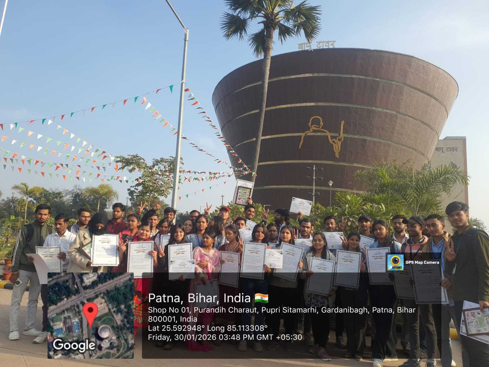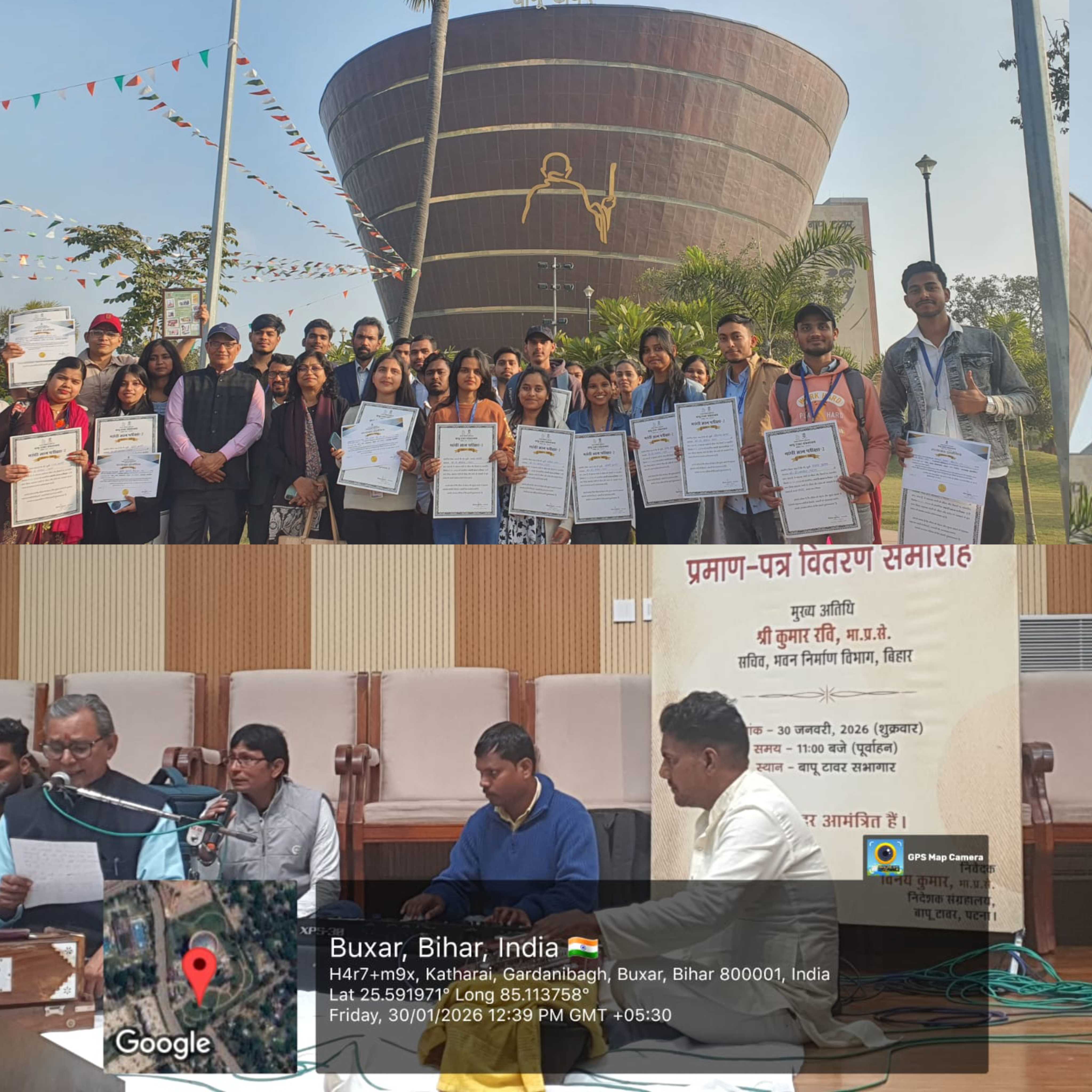 Department of History 2023-27 internship concluded Successfully completed at 30 January,2026 Bapu Tower Patna.a cultural program Bapu Tower administration organized"Gandhi Bhajnavali" and Certificates were distributed. Sumit Kumar topped all colleges in the 'Bapu Knowledge Exam' with 97/100 marks.From Jan 9-27,students immersed themselves in Gandhian philosophy,truth, and non-violence. The students immense enthusiasm showcased the success and significance of this impactful educational journey.