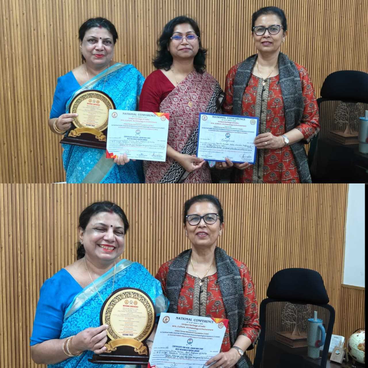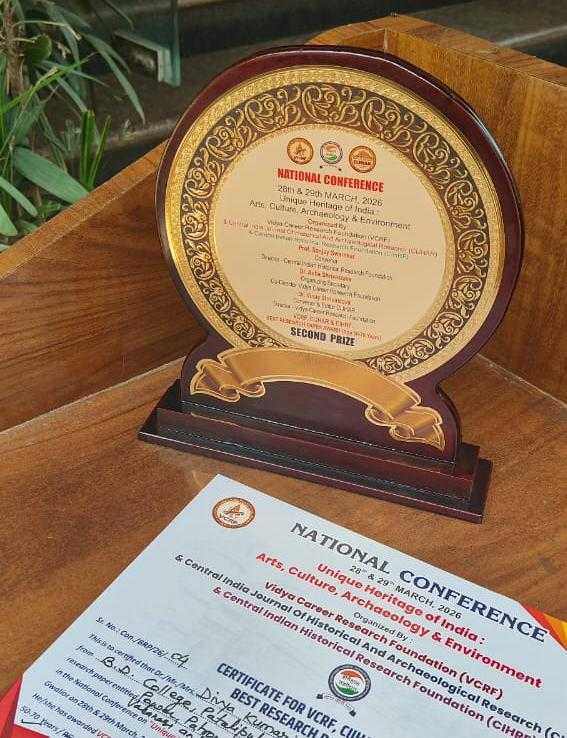 "Dr.Divya Kumar, Department of History got the award for second position regarding best research papers in national conference organized at Gwalior by Central Indian Historical Research Foundation on 29th of March, 2026. Also Dr. Manita Kumari Yadav of the department was well appreciated for her paper presentation in the same Conference"