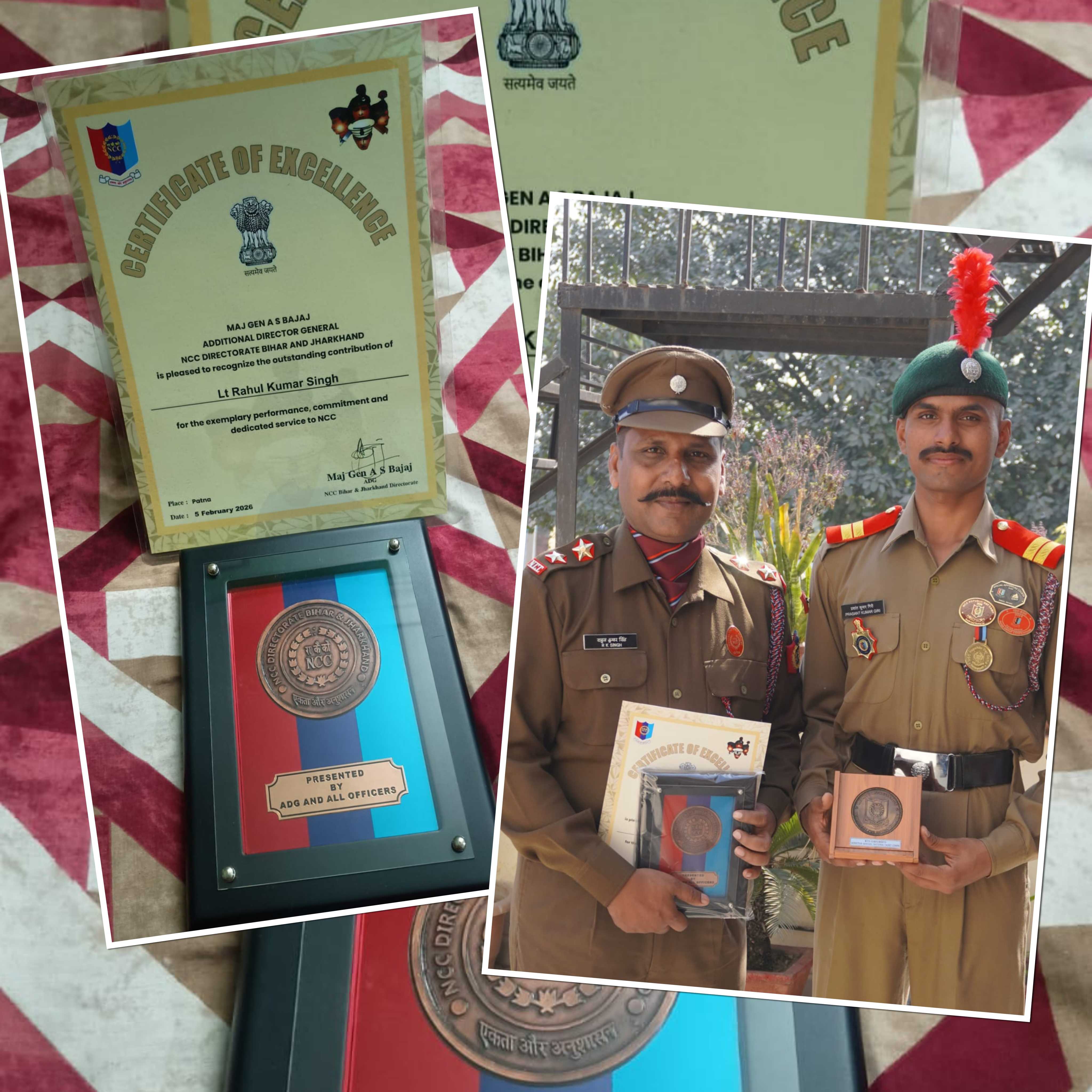 At the NCC ADG Award Ceremony, Lieutenant Rahul Kumar Singh of B.D. College, Patna was honored with the 'Best ANO' award, and Cadet Prashant Kumar Giri received the 'DG NCC Medallion'.