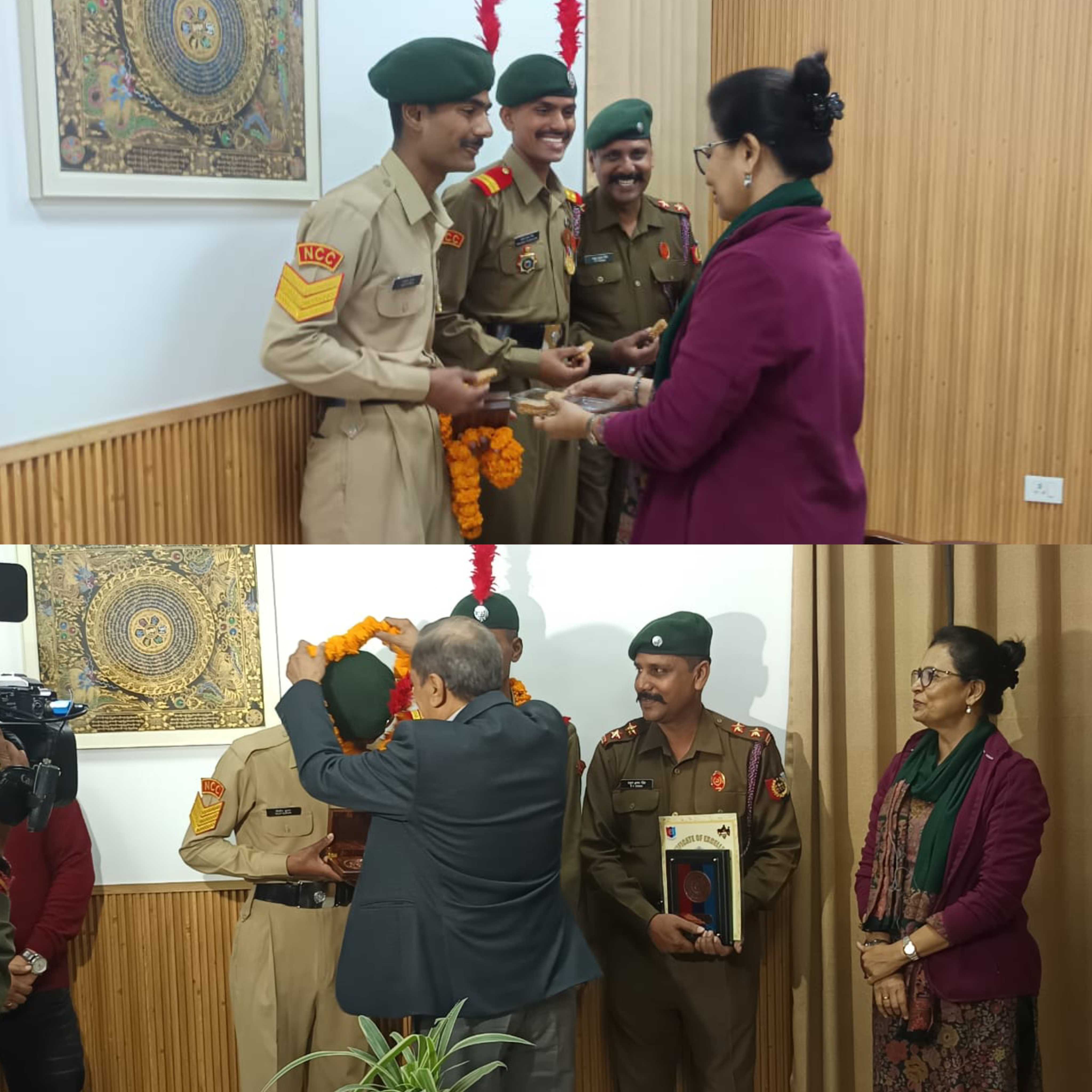NCC cadets returning from the Republic Day Parade (RDC) in Delhi paid a courtesy call on the Principal