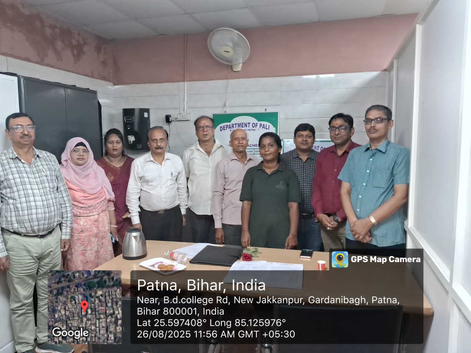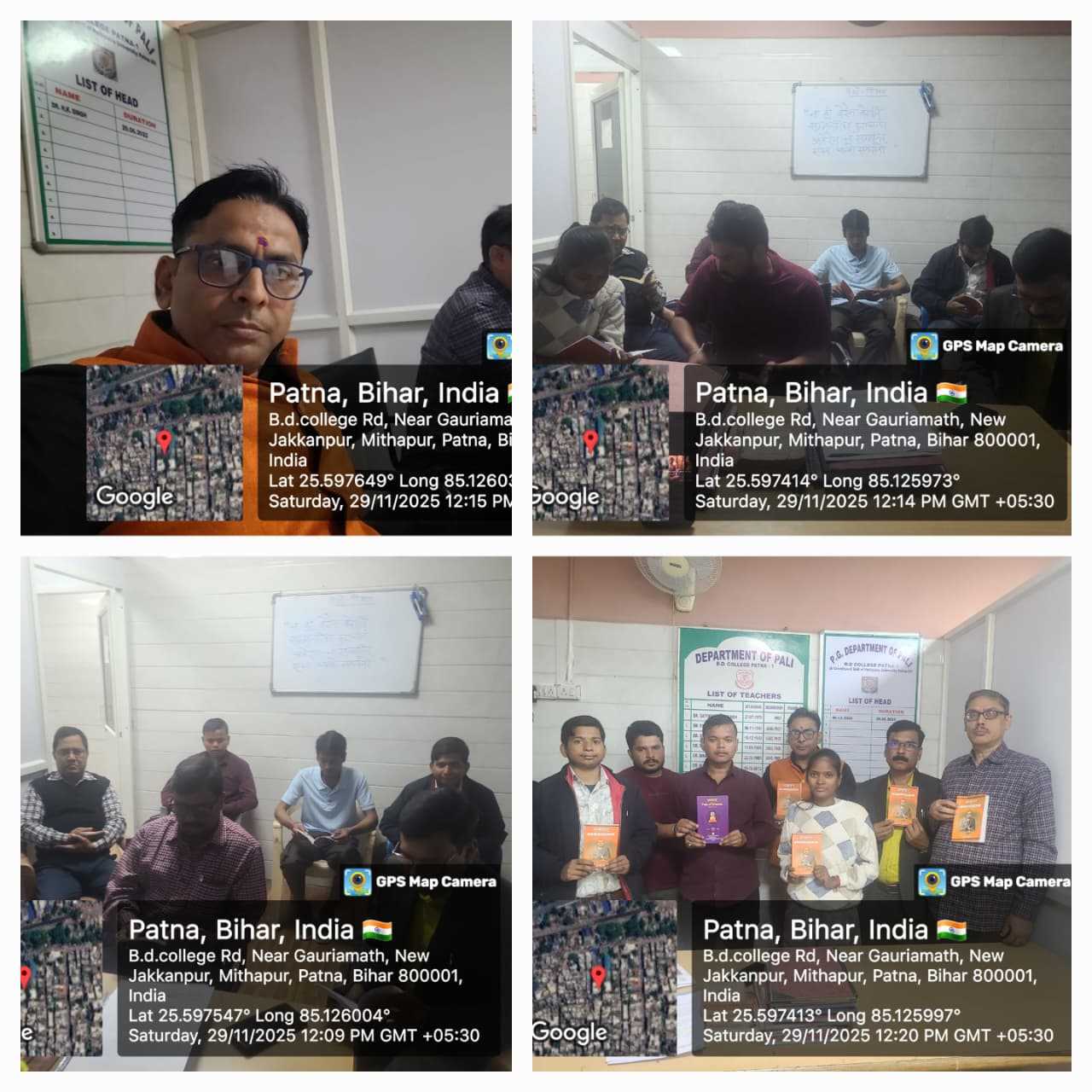 As per the previously scheduled program, the Pali Department held a धम्मपद recitation and practice session at the college on December 13, 2025. The second chapter of the धम्मपद, the अप्पमादवग्ग, was recited. Students also had an internal assessment scheduled for the day, and the practice session was held before the test. Dr. Rahul Amritraj, Head of the Pali Department, inaugurated the program with a Buddhist prayer and encouraged students to study.