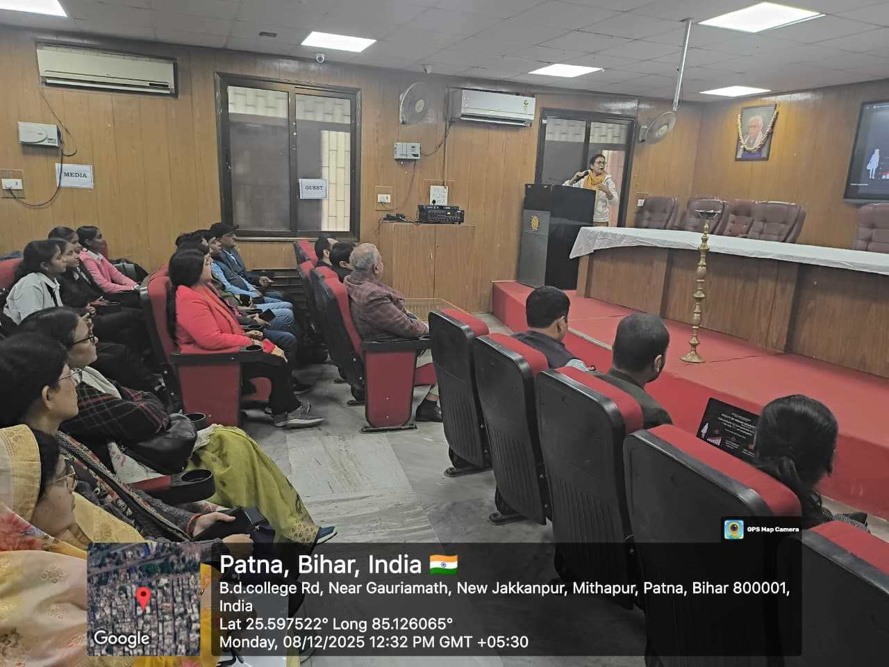 "The B.D. College Placement Cell organized an aviation training and placement program on the theme ""Fly High Bihar: Opportunities that Take Flight of Every Dream"" on December 8, 2025, in the college seminar hall. The program was held under the auspices of the Millennium Air Hostess Academy. The program was organized under the guidance of Principal Prof. Ratna Amrit Madam and coordinated by Director Madam Vanshika Singh with the support of the Placement Cell members."