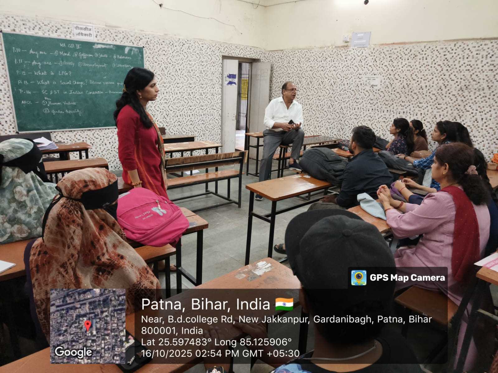 As a part of Discipline Specific Elective, 'Gender Sensitisation', Group Discussion was organised for PG students of Sociology on the topic of 'Gender Equality' to create awareness and sensitivity with regard to issues of women and multiple sexualities.